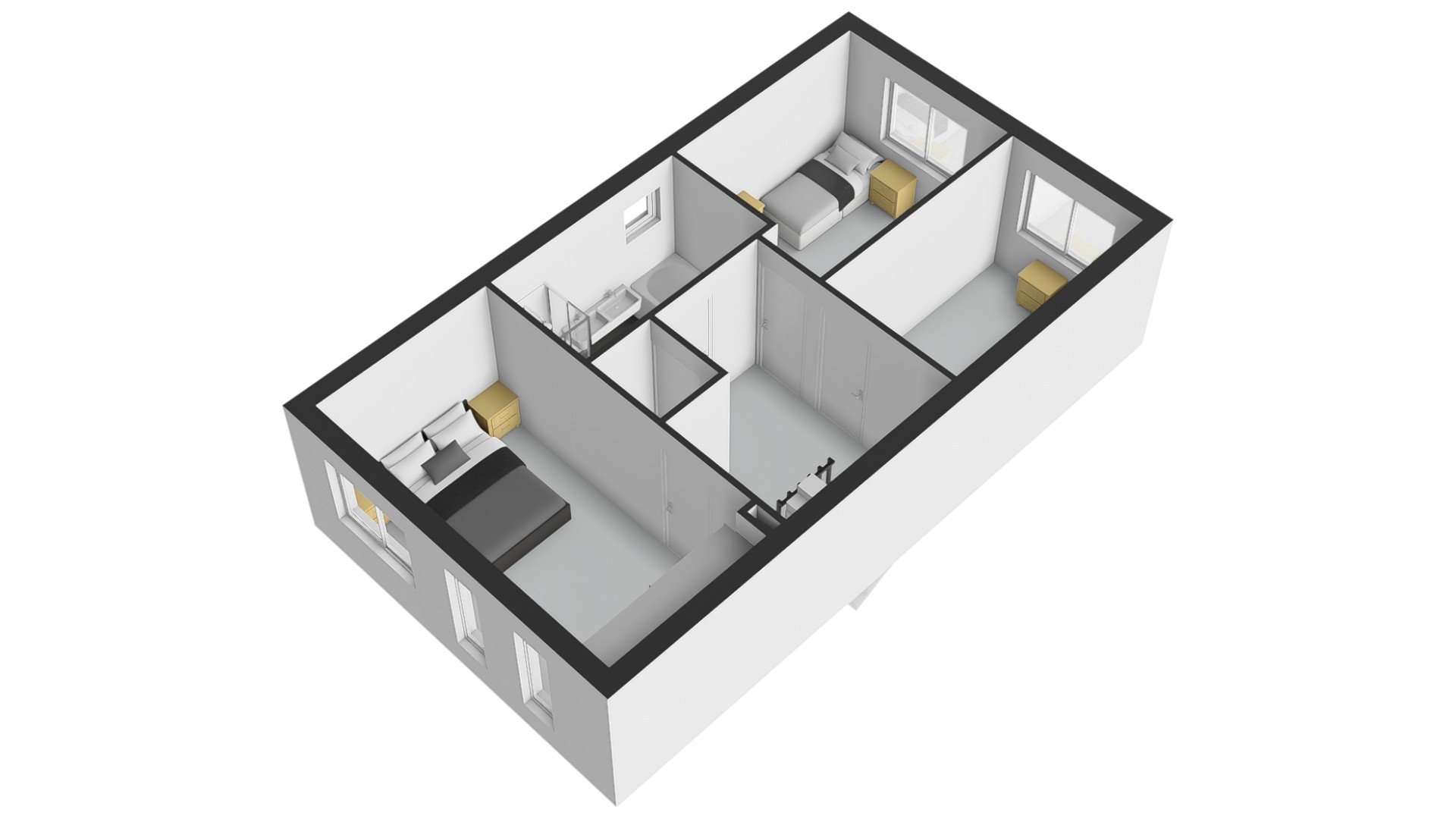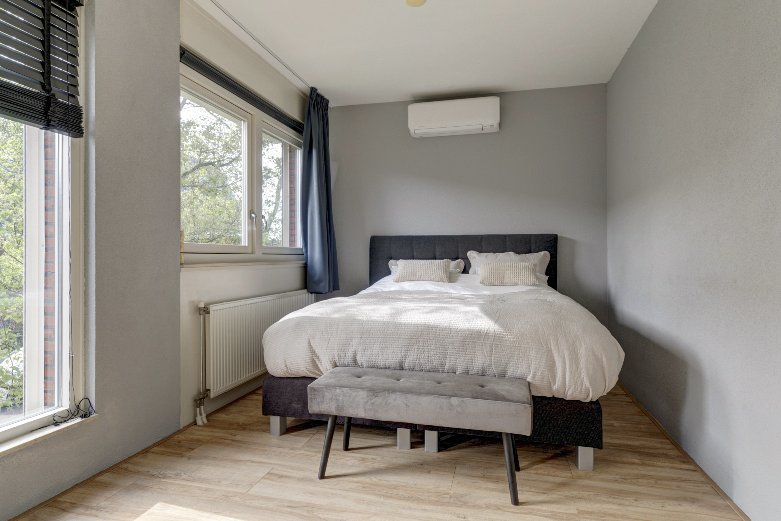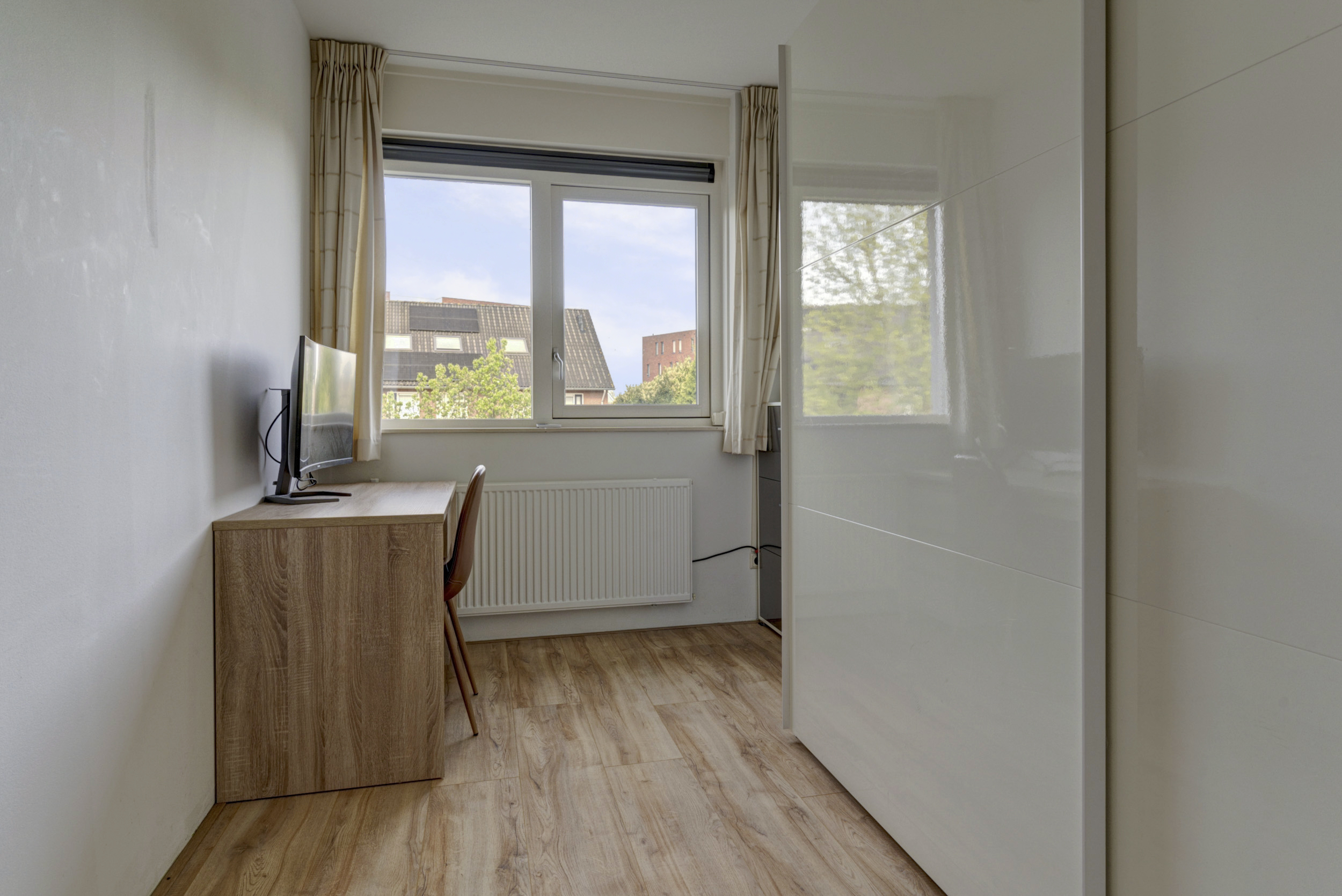 Op de eerste verdieping kom je op de overloop die toegang geeft tot drie goed bemeten slaapkamers. De kamers zijn stuk voor stuk licht en praktisch in te delen als slaap-, kinder-, werk- of kleedkamer. Wat hier extra prettig is, is de aanwezigheid van een separaat tweede toilet – ideaal voor gezinnen en gasten.