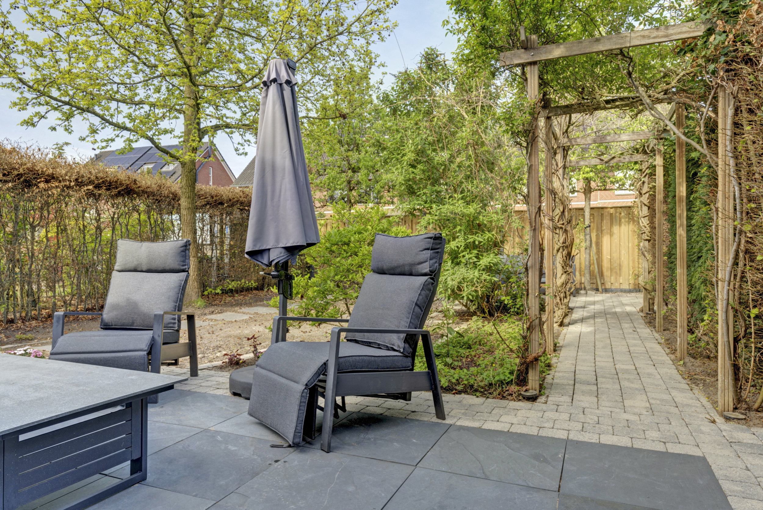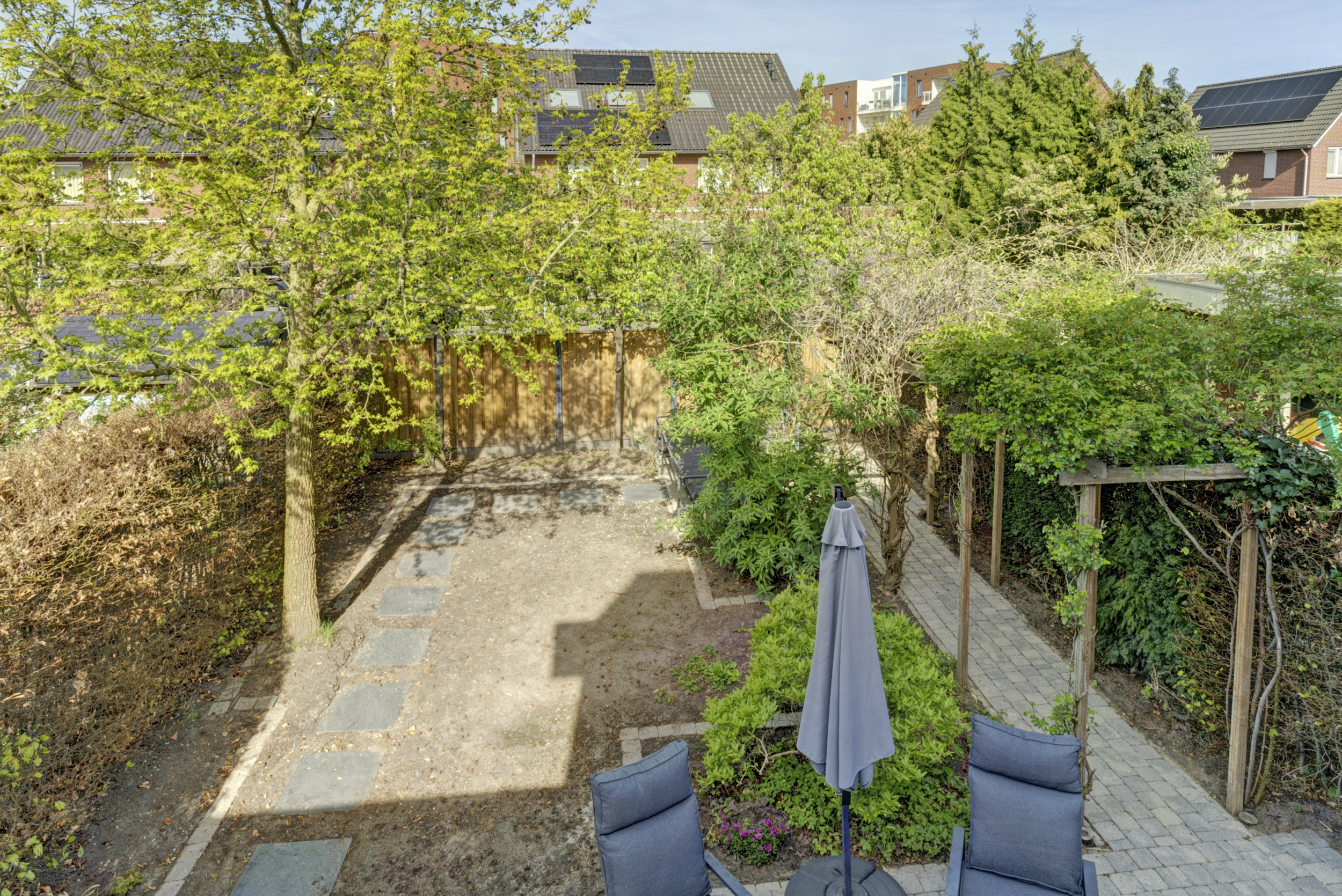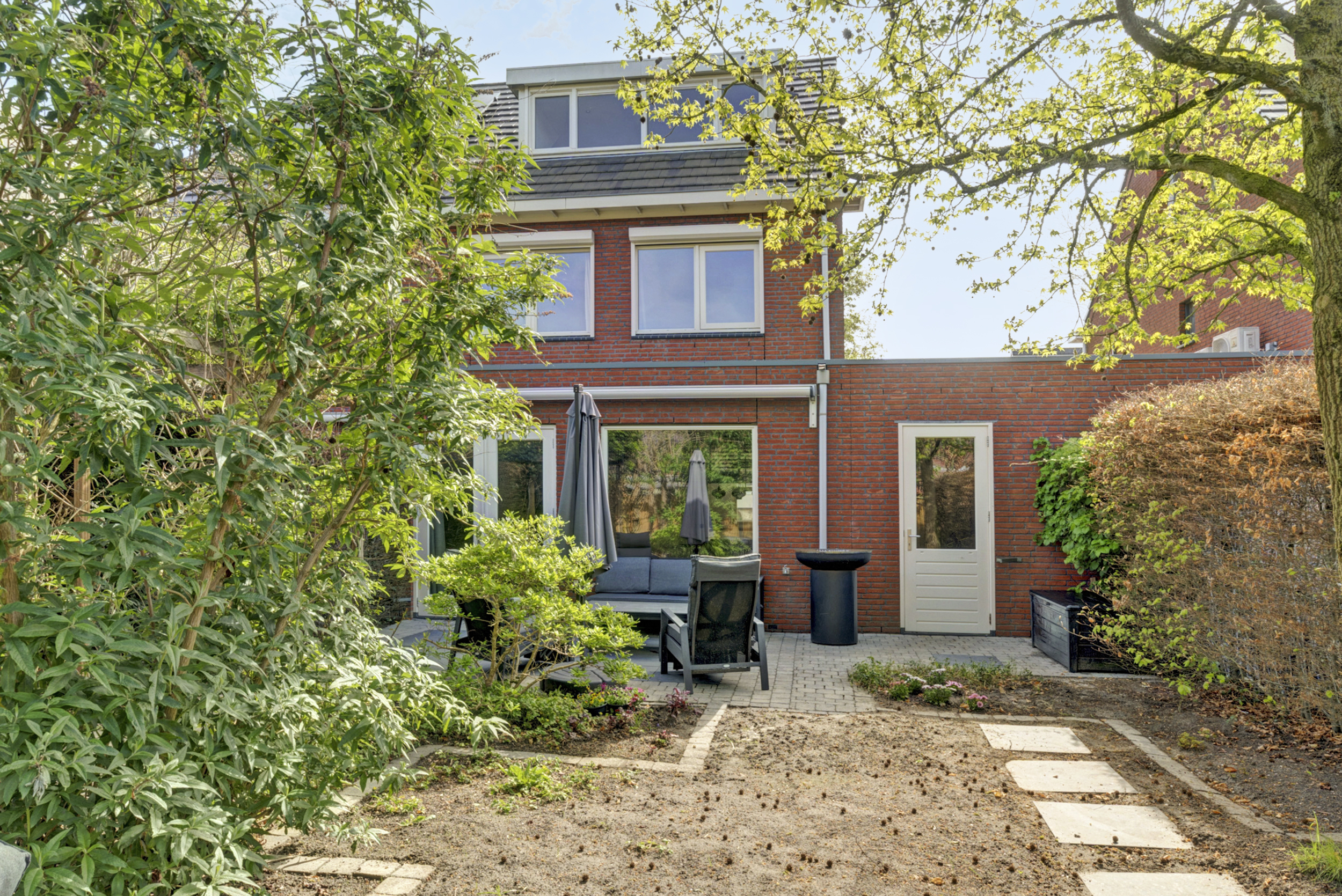 De achtertuin is gesitueerd op het westen, wat betekent dat je hier volop kunt genieten van de middag- en avondzon. Of je nu houdt van lange zomeravonden buiten eten, een speelplek voor de kinderen of een fijne loungehoek: deze tuin biedt volop mogelijkheden. De garage is een waardevolle aanvulling en ideaal voor het stallen van fietsen, het opbergen van spullen of als hobbyruimte.