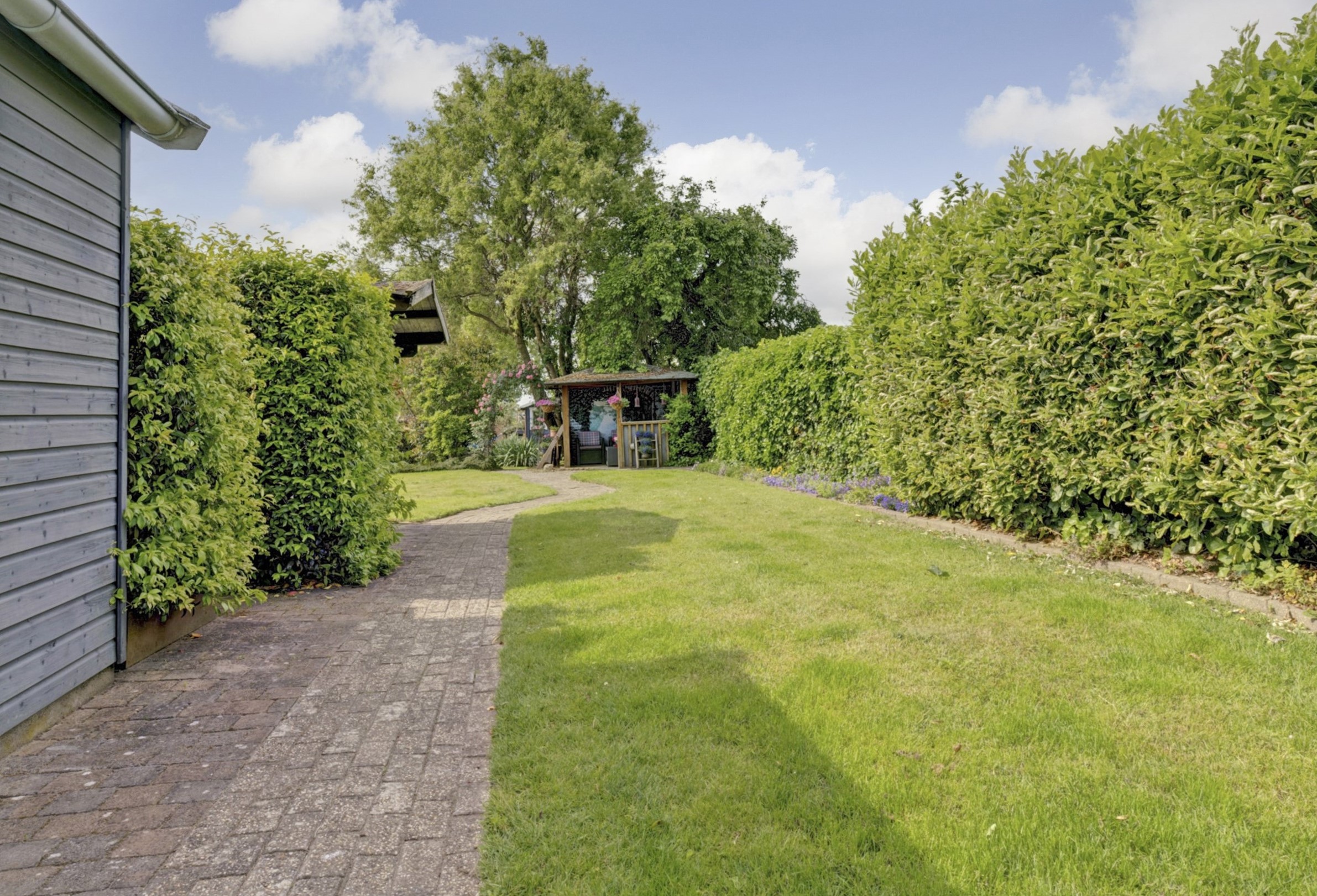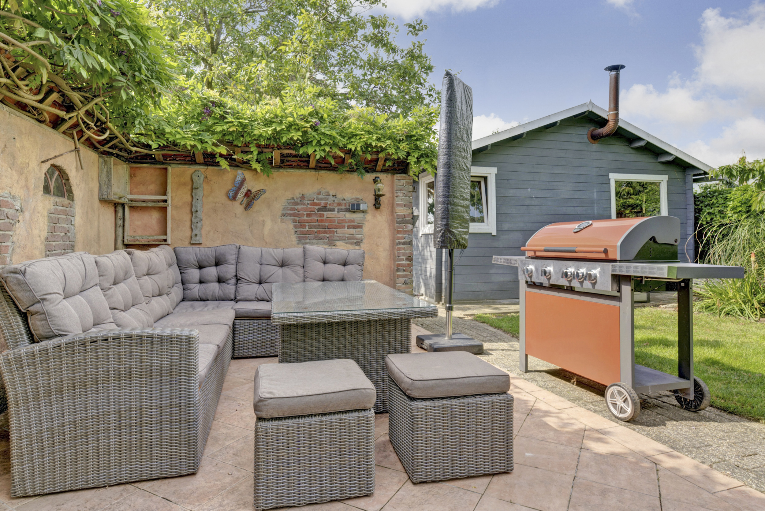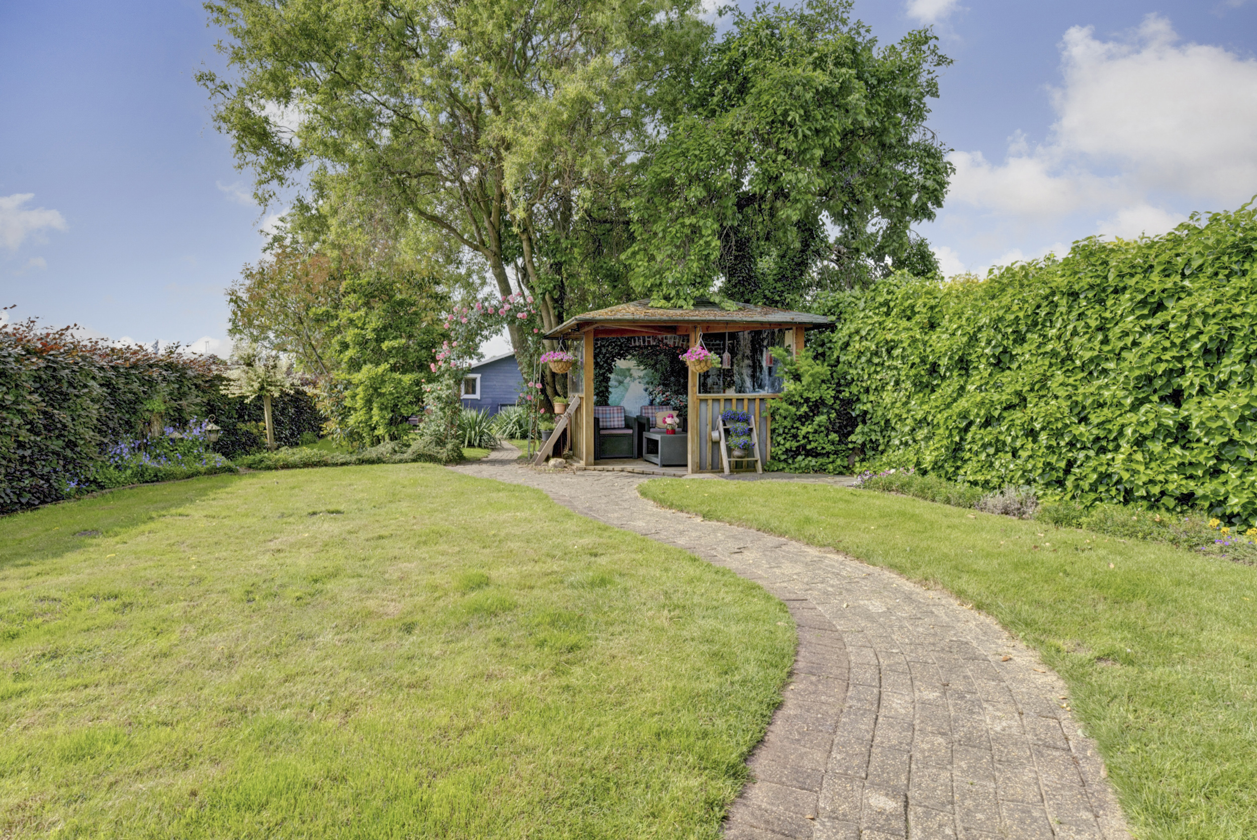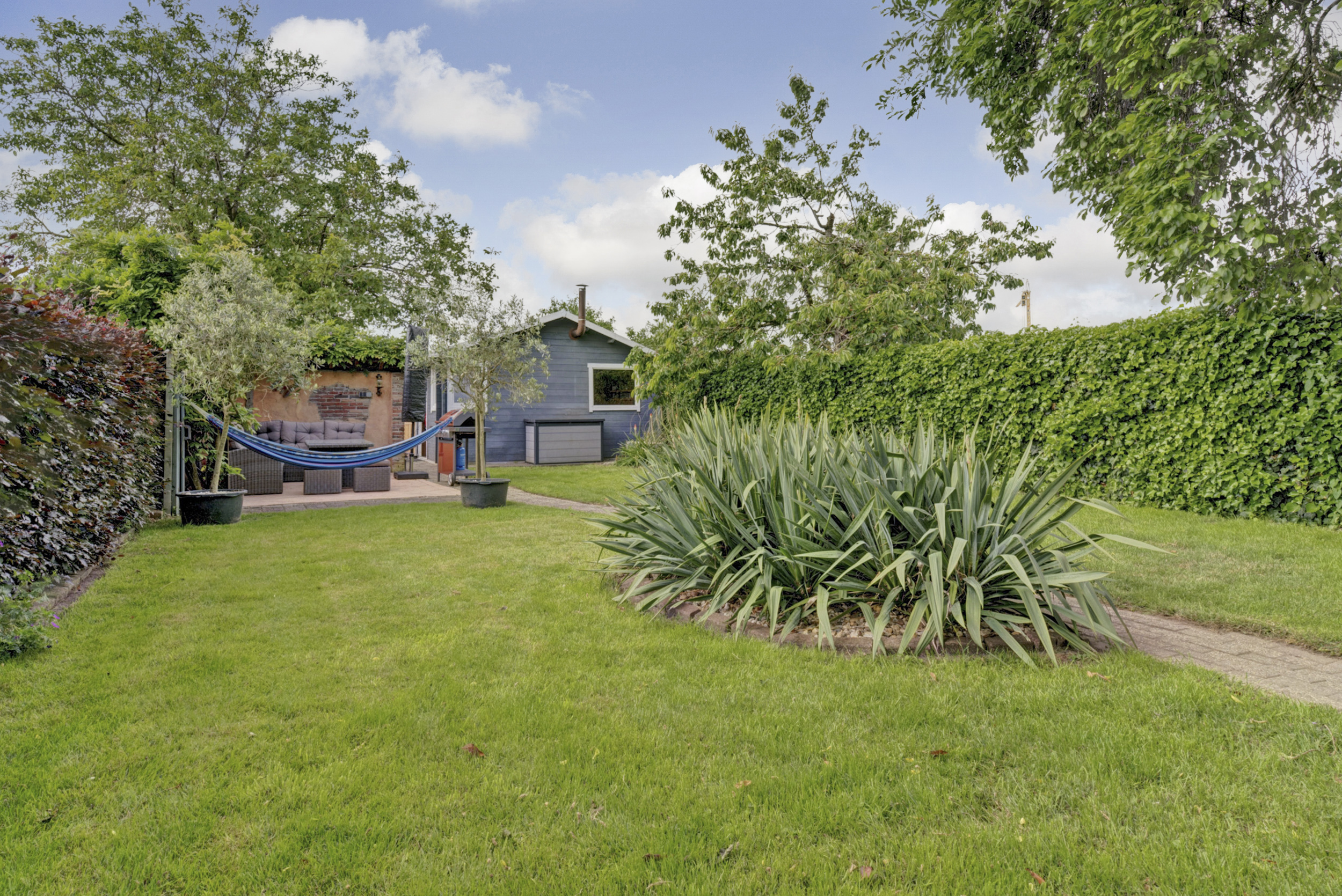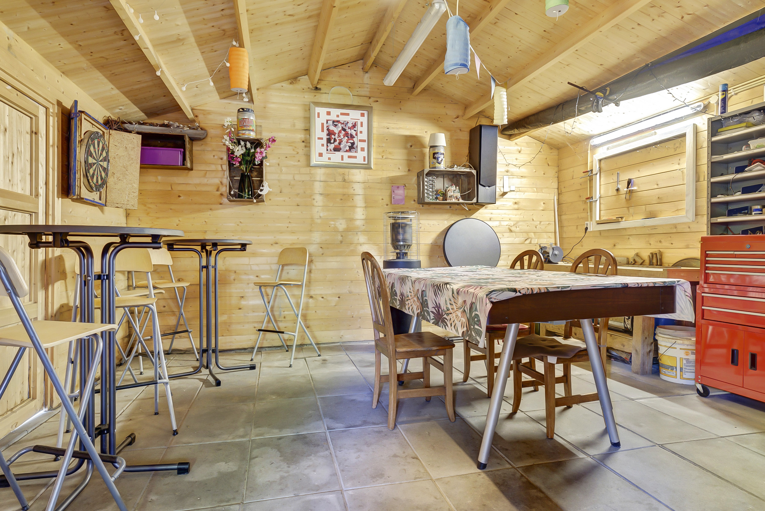 Op de oprit is parkeergelegenheid voor meerdere auto’s aanwezig en onder de carport kan de auto beschut staan. In de tuin staan o.a. nog een houten schuur en een 2e vrijstaand bijgebouw, dat perfect te gebruiken is als hobbyruimte, ontspanningsruimte of atelier.
