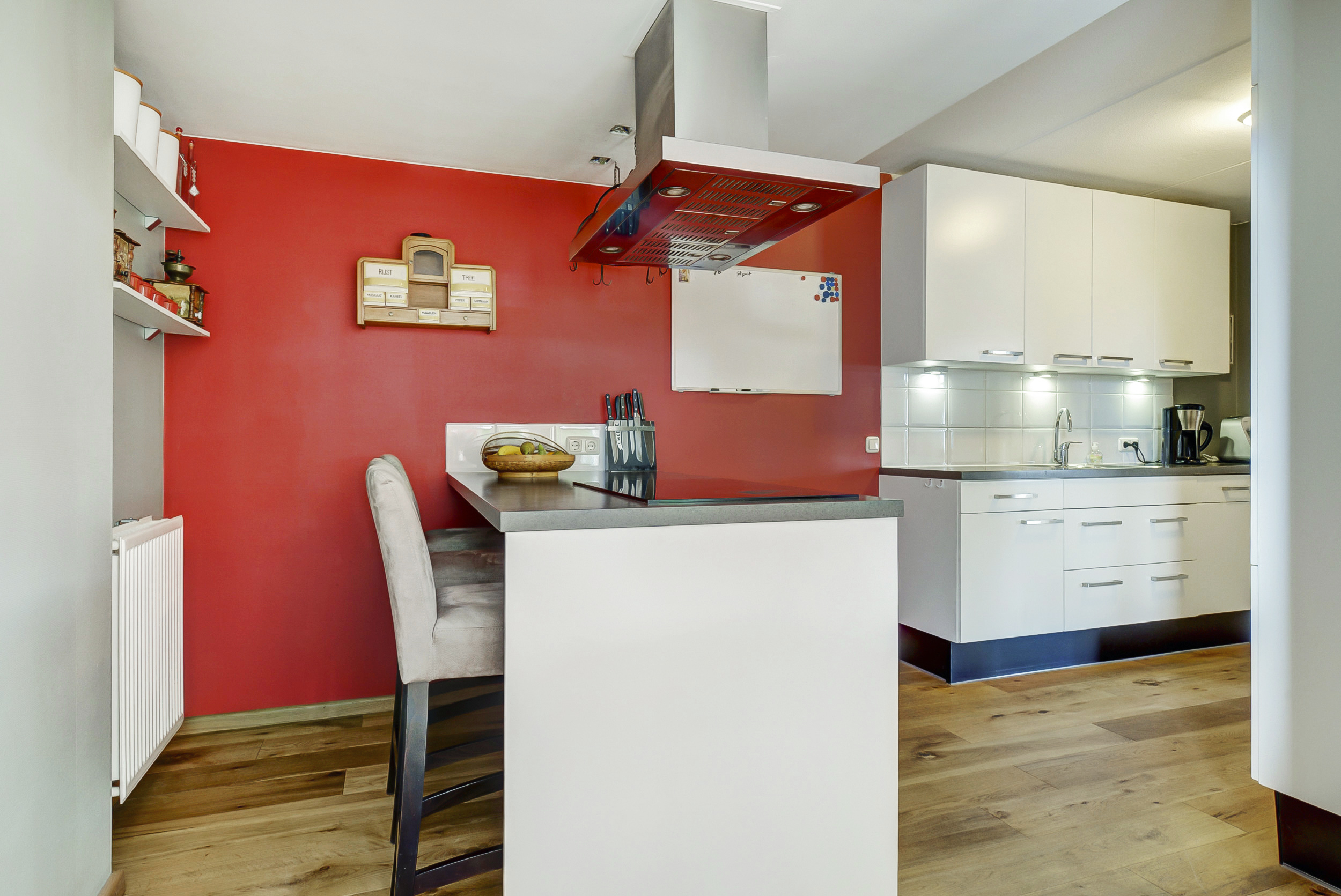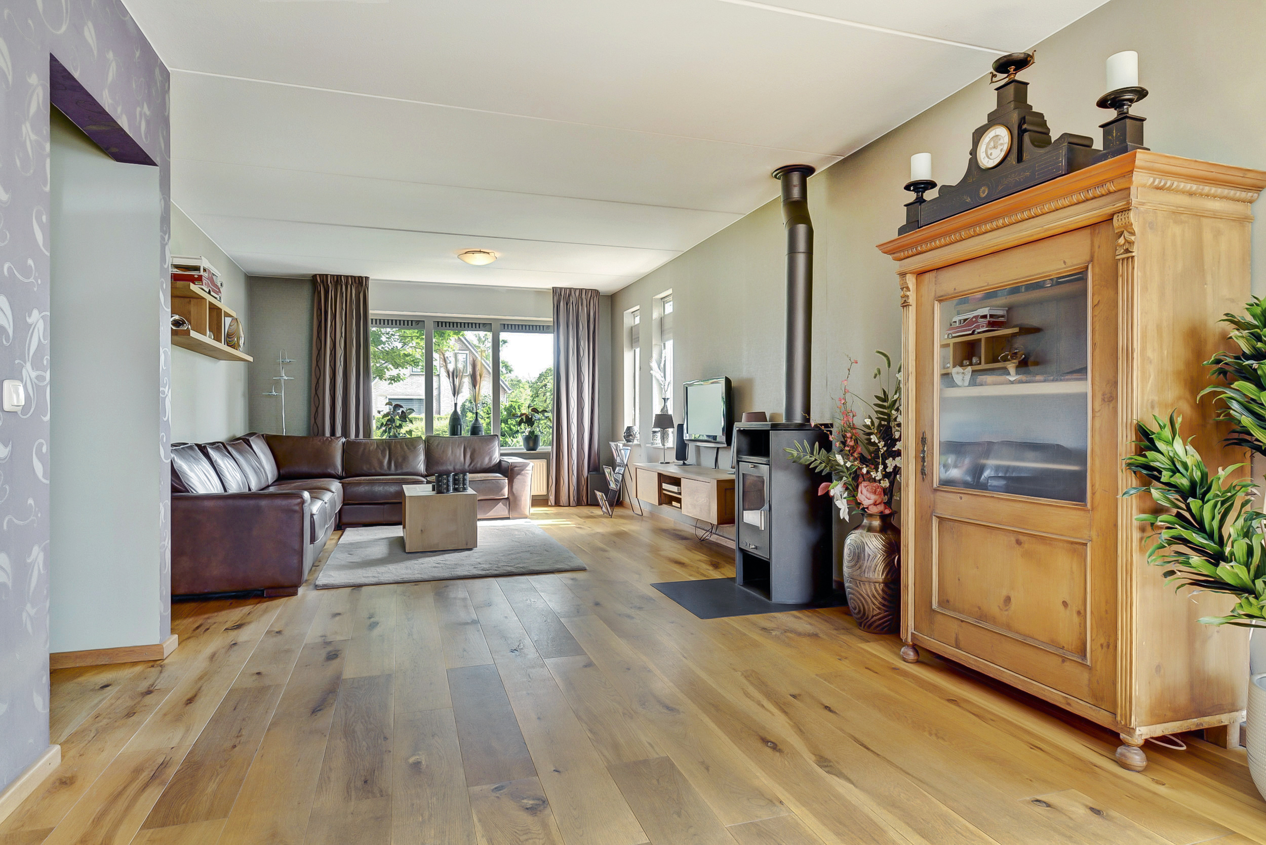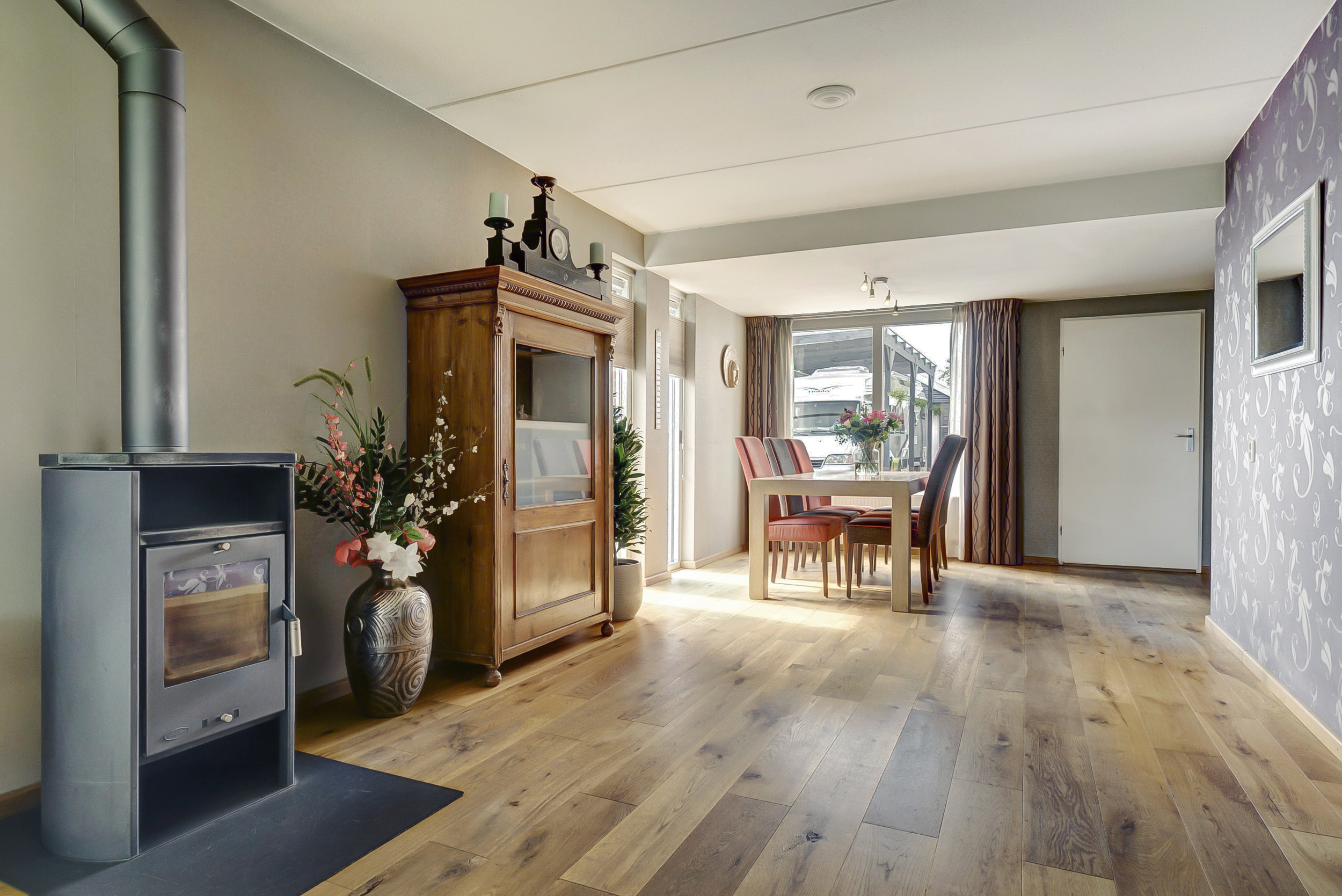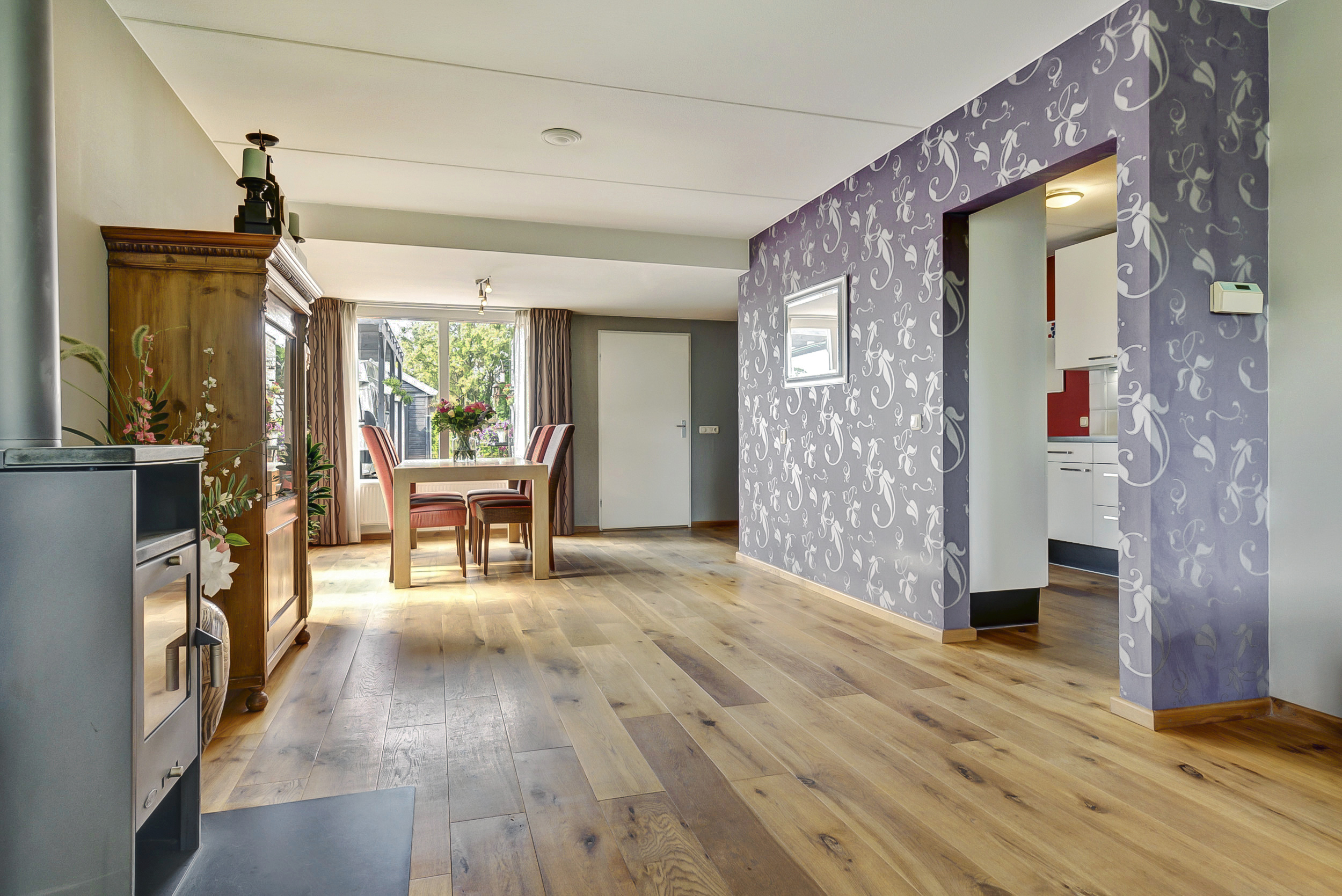 – De woonkamer en keuken hebben een eikenhouten vloer;