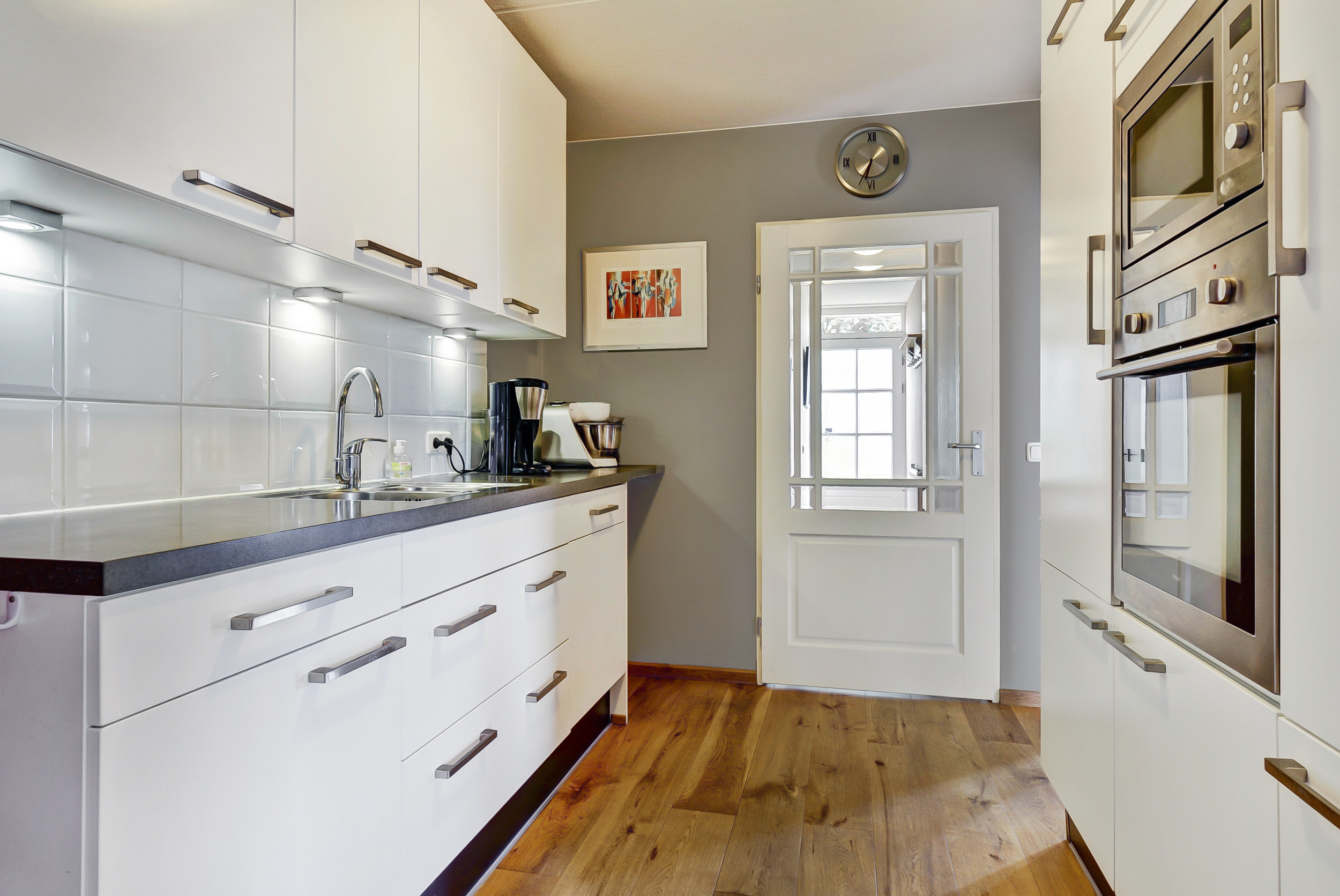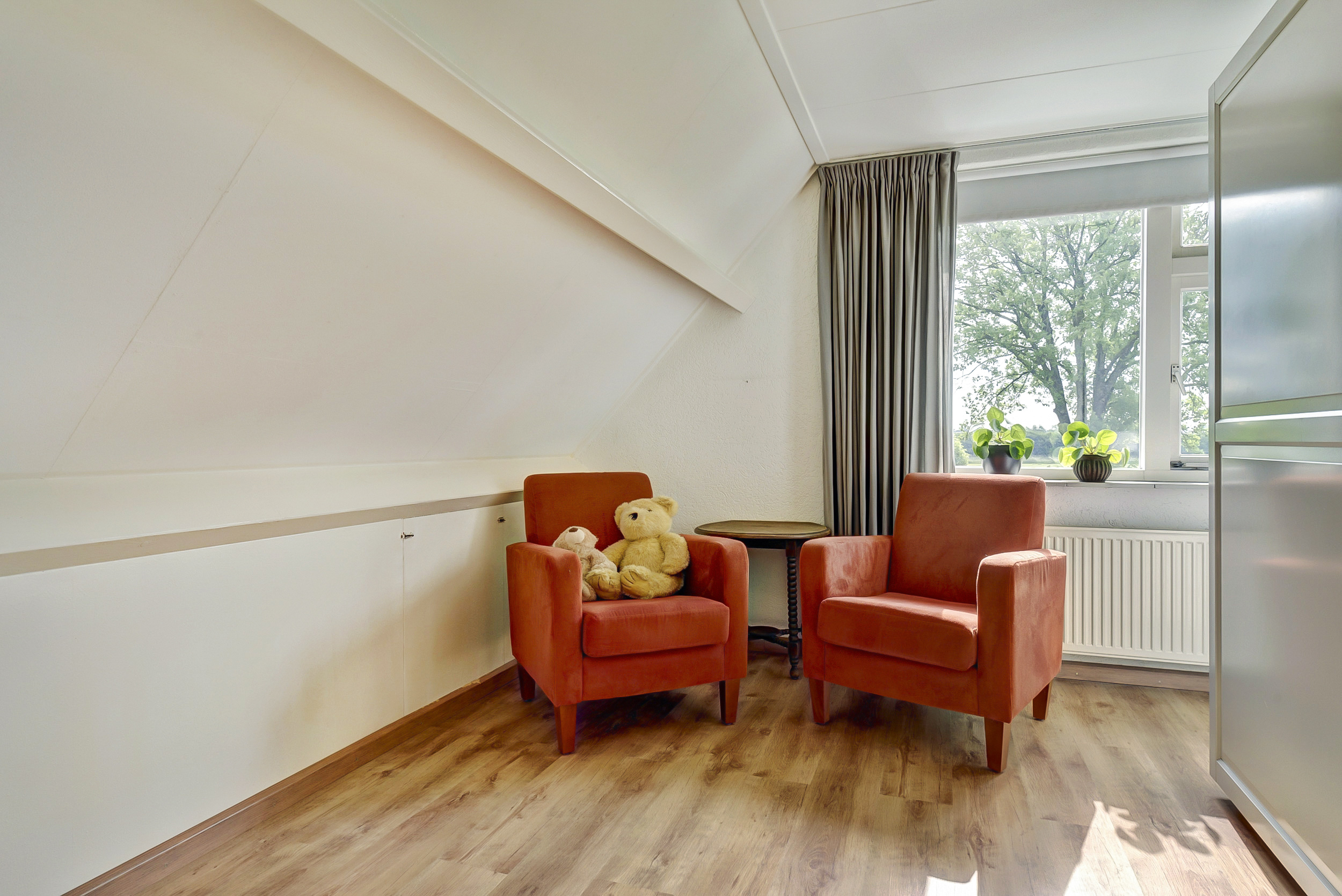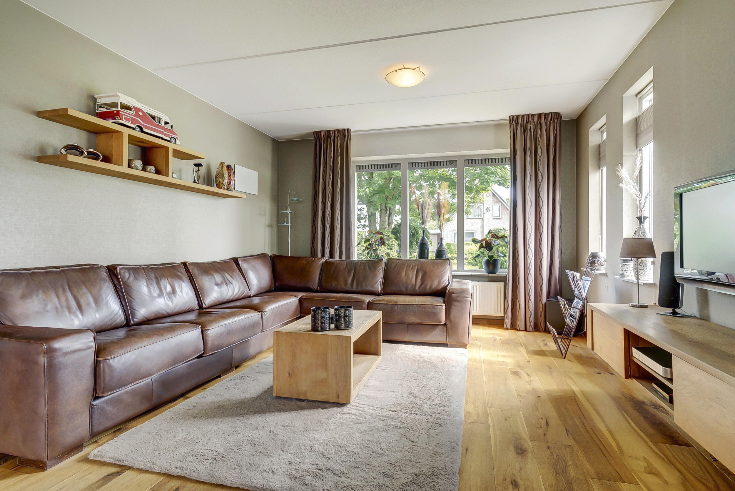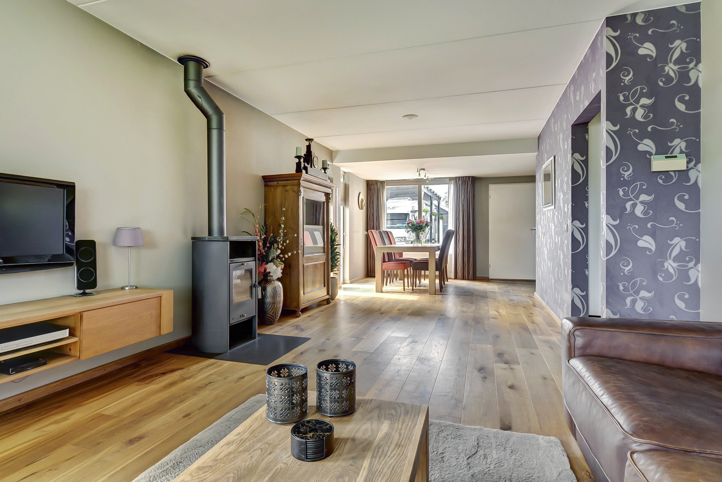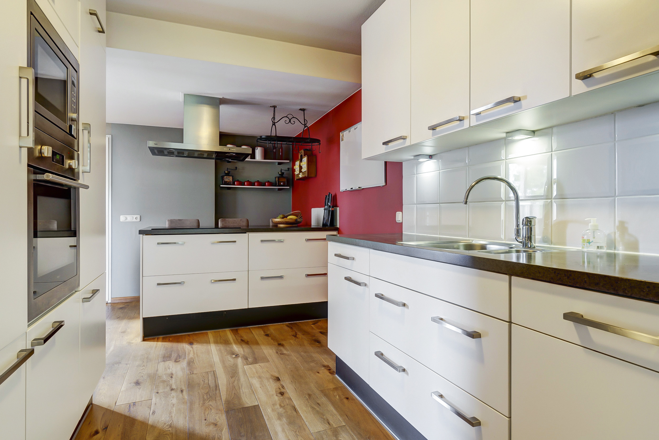 – De woonkamer en keuken hebben een eikenhouten vloer;