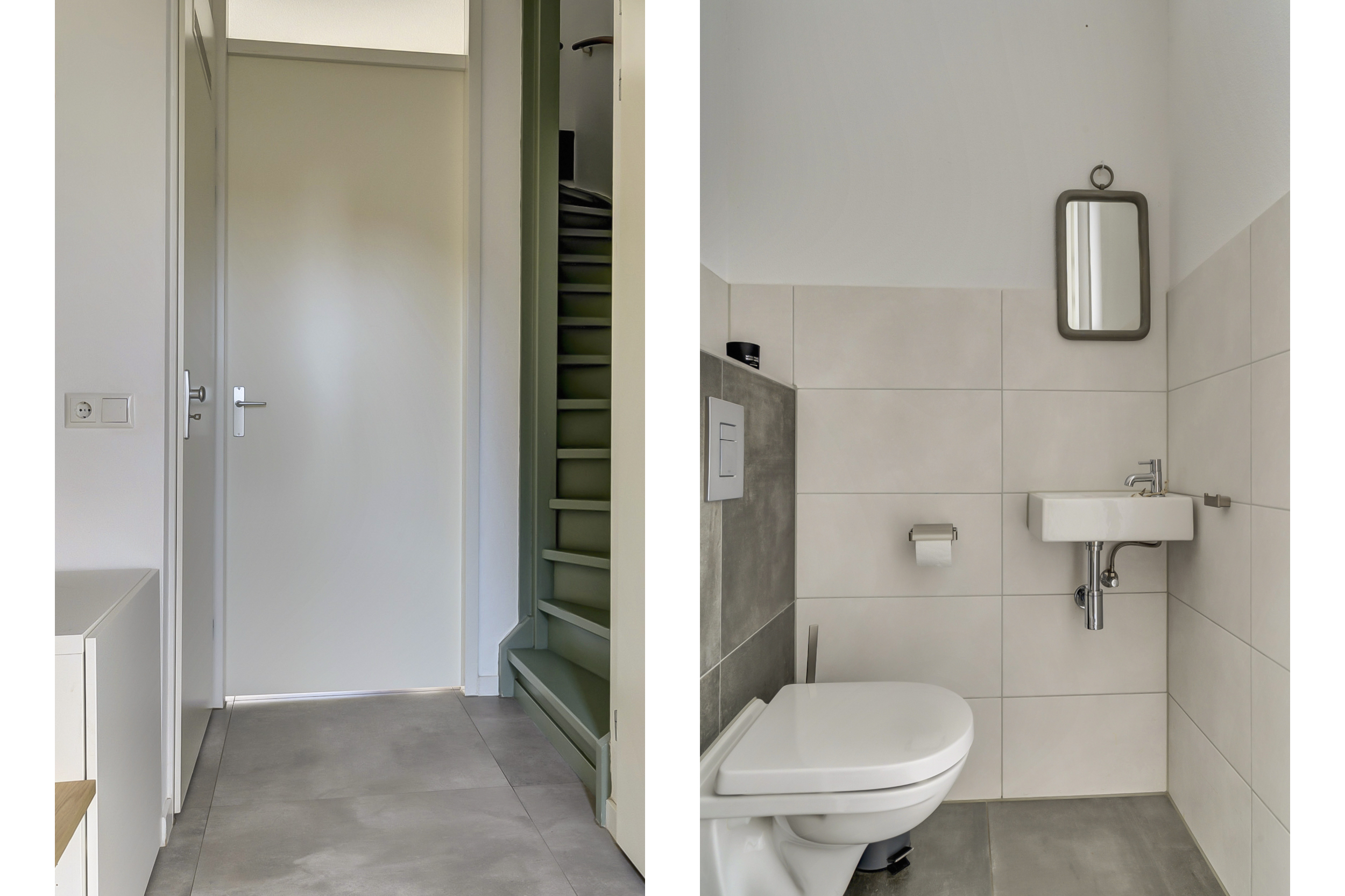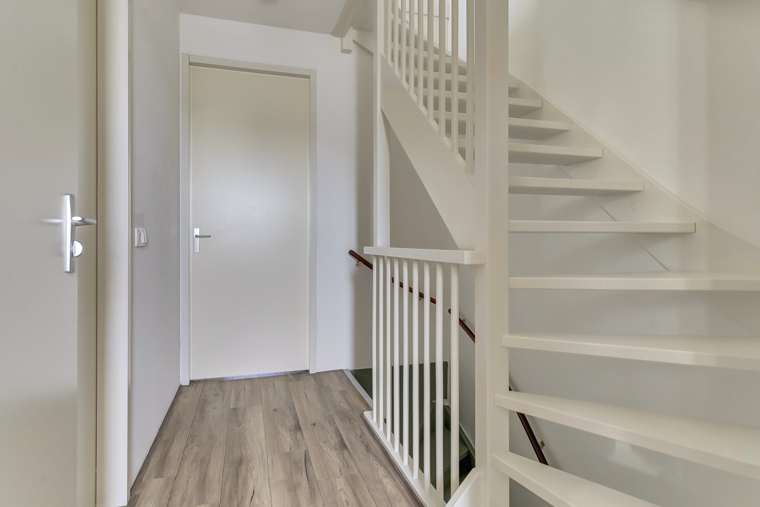 Je komt binnen in de hal met meterkast, trapopgang en een modern toilet met fonteintje. Vanuit de hal loop je door naar de royale woonkamer.