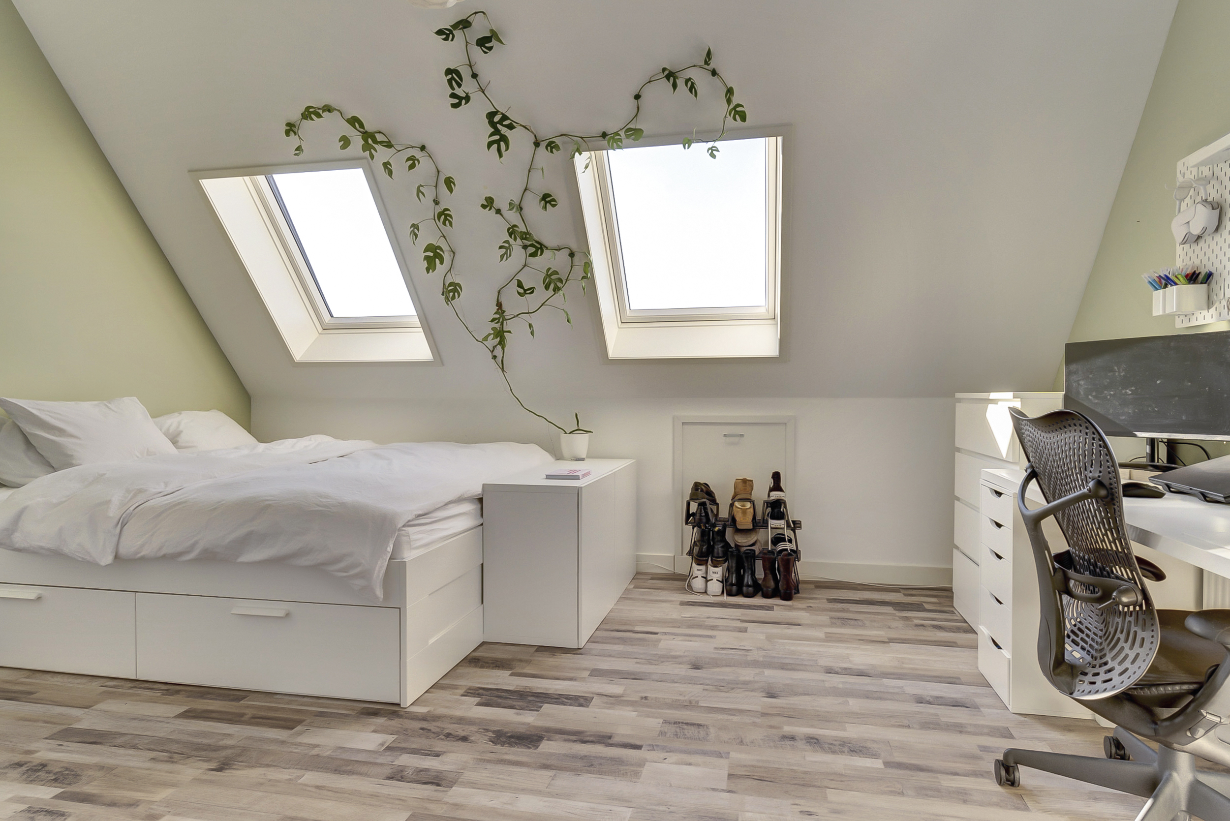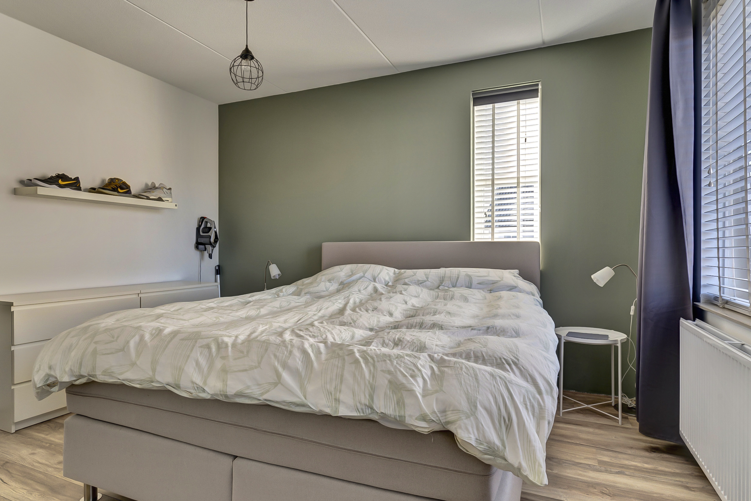 De hoofdslaapkamer is bijzonder ruim: maar liefst circa 20 m² groot. Oorspronkelijk bestond deze ruimte uit twee slaapkamers, waardoor je hier eenvoudig weer een extra kamer zou kunnen creëren als je dat wilt.