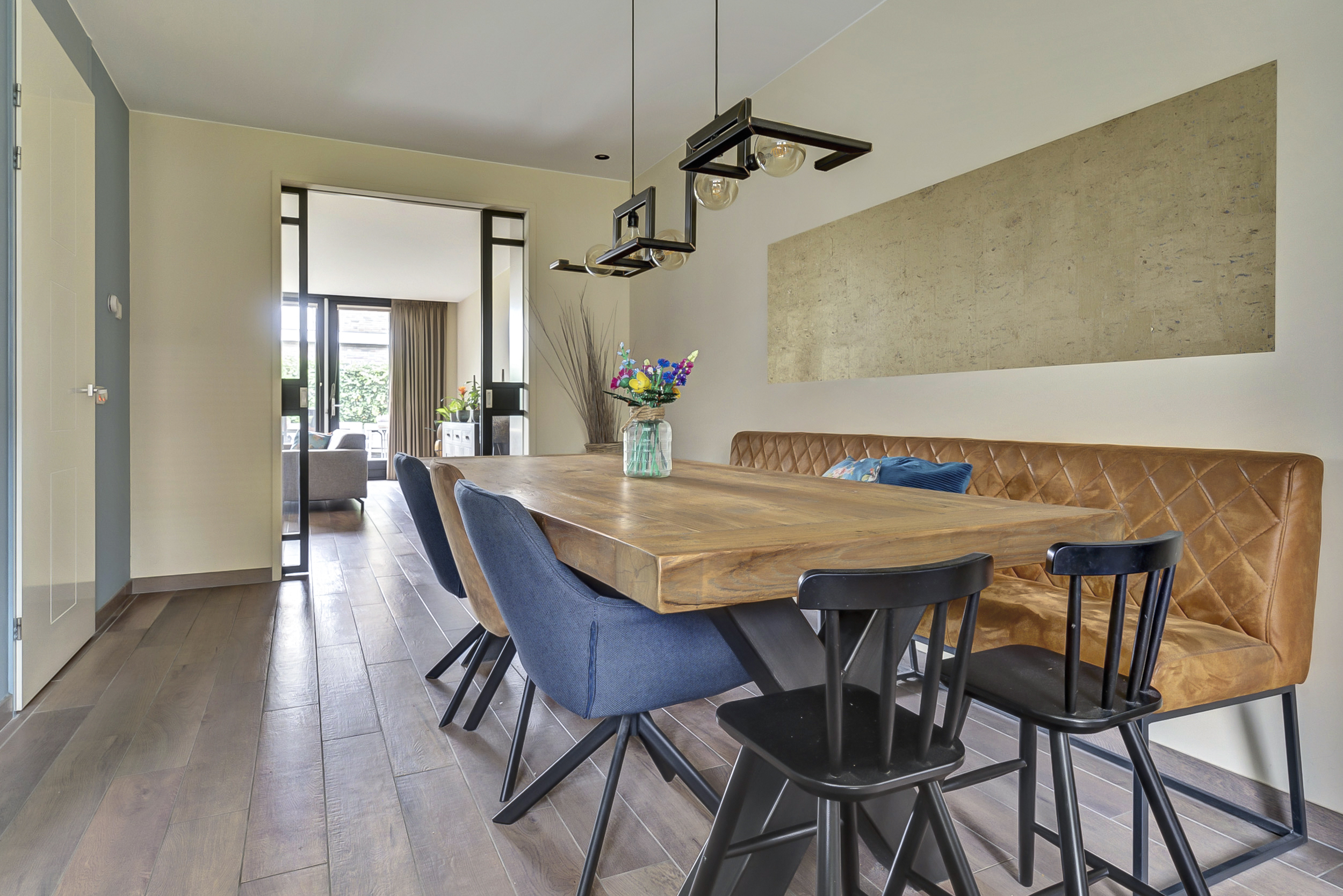 Aan de voorzijde bevindt zich de absolute eyecatcher van het huis: de woonkeuken van maar liefst 29 m². Hier kook, leef en geniet je samen. De keuken is in november 2021 volledig vernieuwd met een zeer luxe en complete inrichting, voorzien van hoogwaardige inbouwapparatuur en volop werk- en bergruimte. En alsof dat nog niet genoeg is, beschikt de keuken over niet één, maar zelfs twee vaatwassers. Er is meer dan genoeg plek voor een royale eettafel waar je uitgebreid dineert of gezellig borrelt met vrienden en familie.