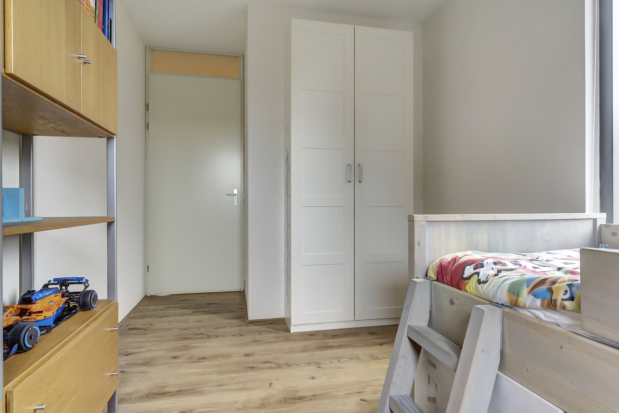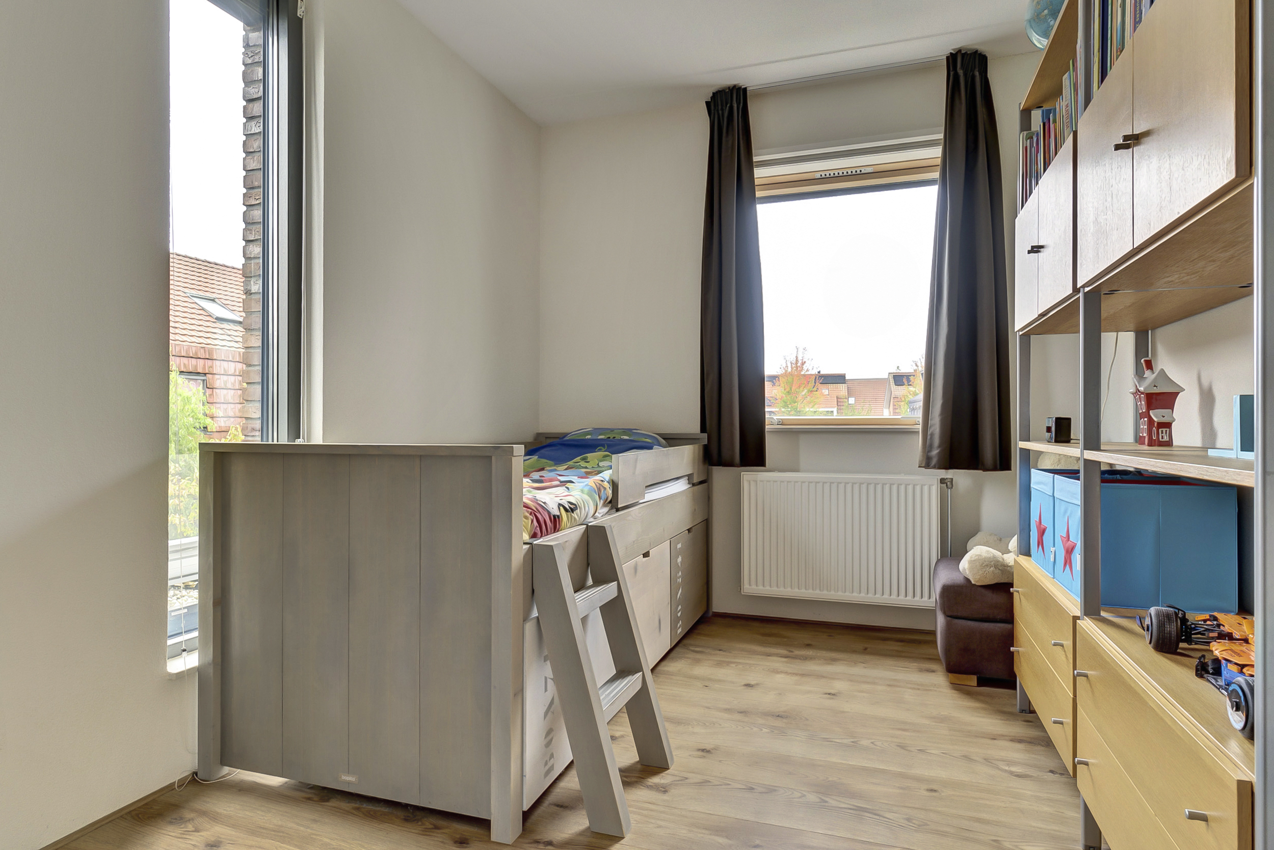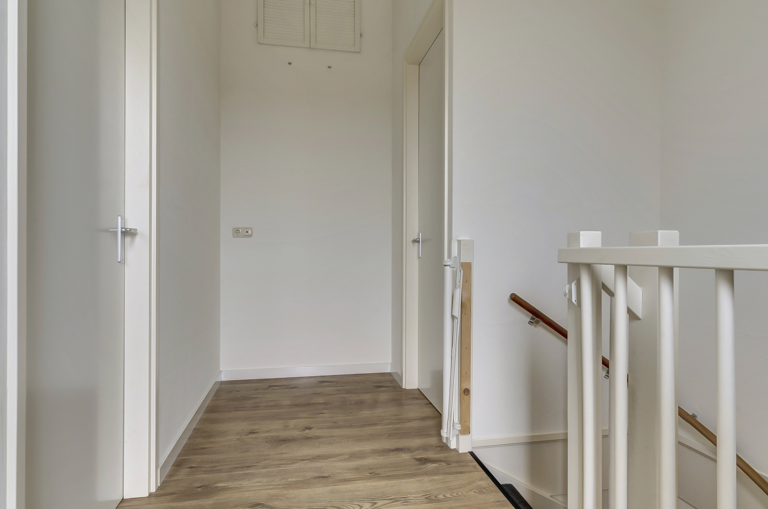 Op de eerste verdieping kom je uit op een ruime overloop. Hier vind je drie volwaardige slaapkamers. De hoofdslaapkamer beschikt over een royale inloopkast – een droom voor iedereen die van overzicht en ruimte houdt. De andere kamers zijn ideaal als kinder-, werk- of logeerkamer.
