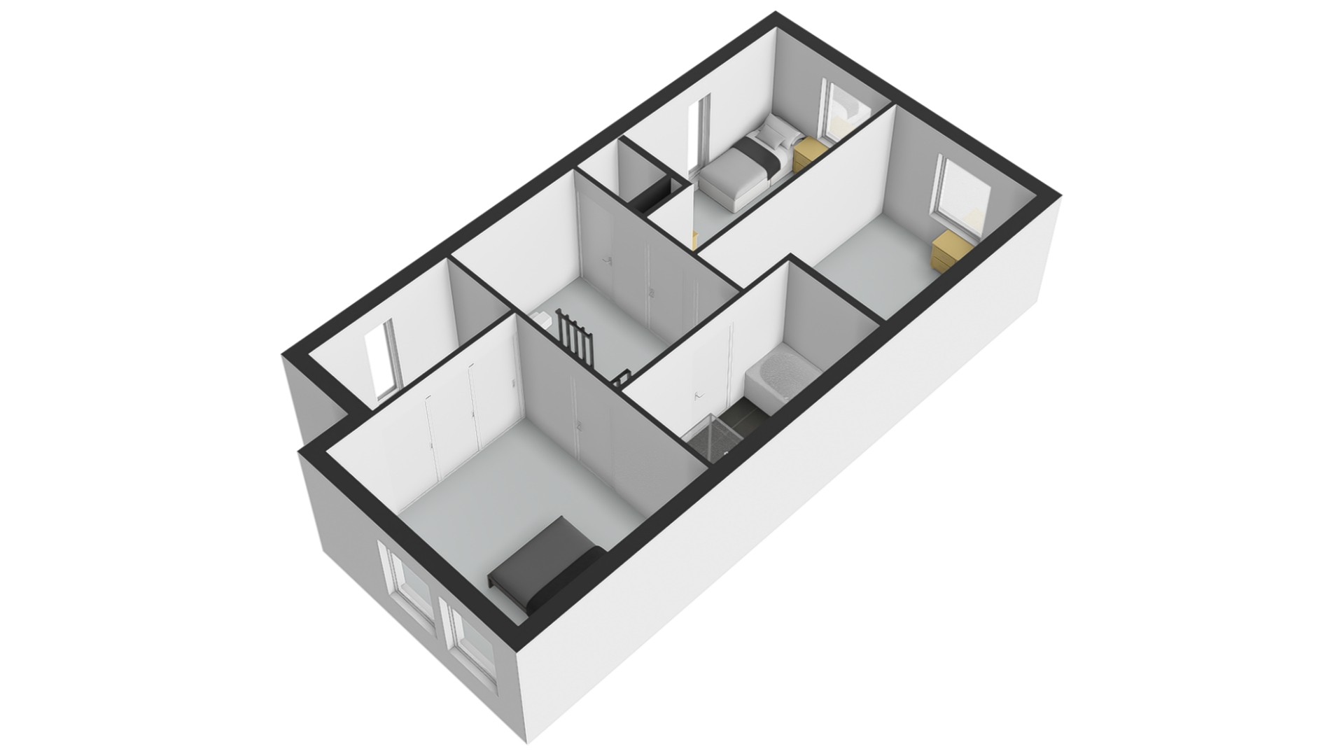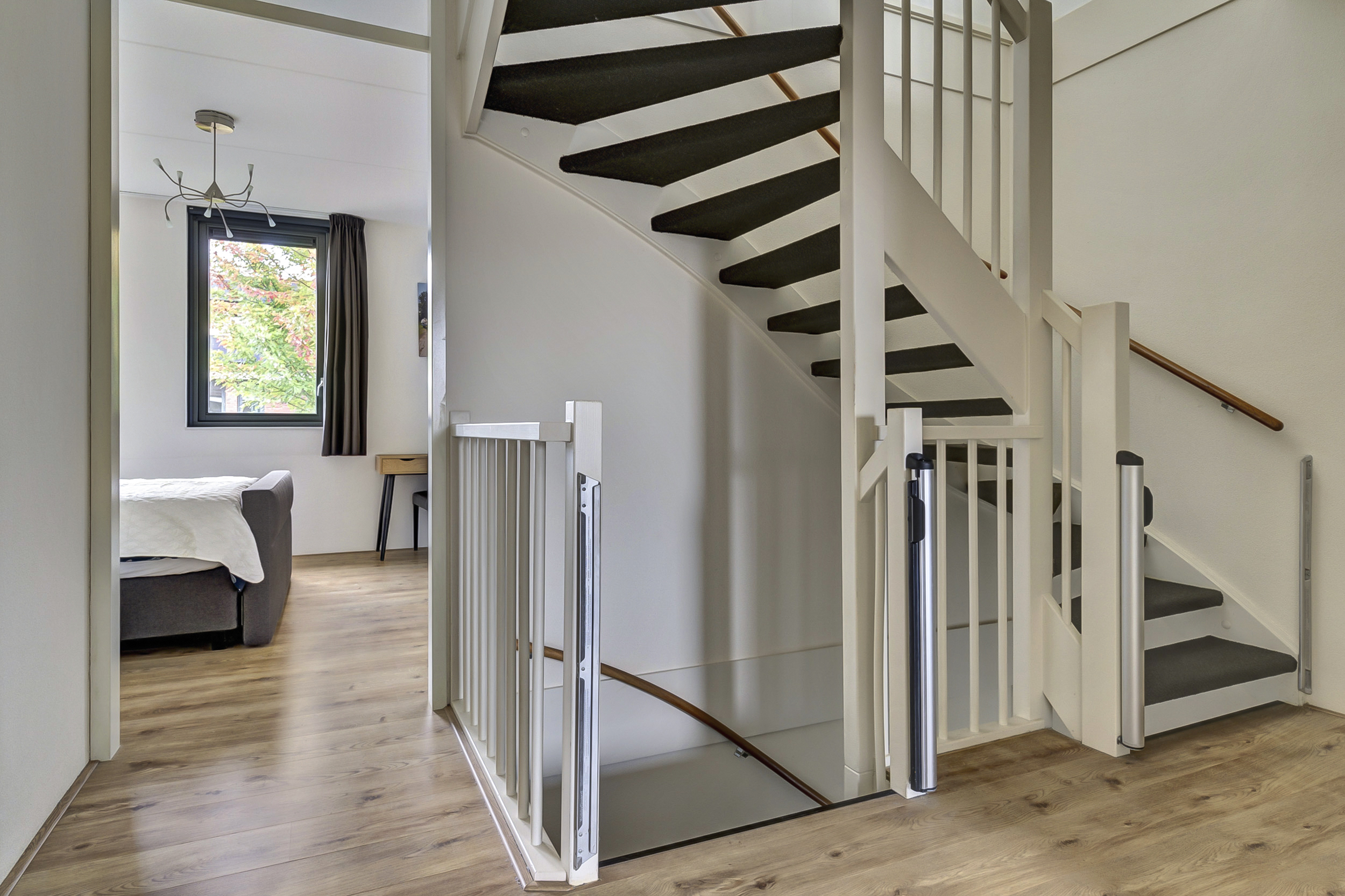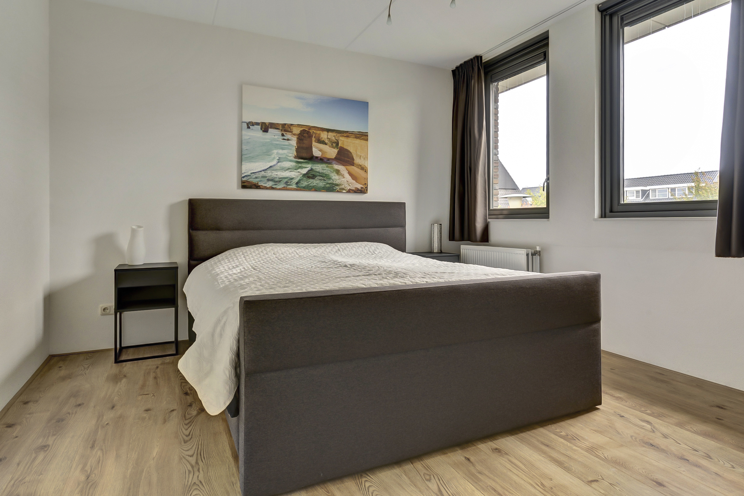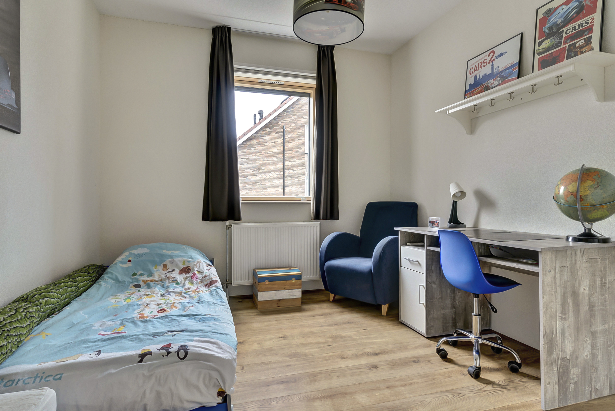 Op de eerste verdieping kom je uit op een ruime overloop. Hier vind je drie volwaardige slaapkamers. De hoofdslaapkamer beschikt over een royale inloopkast – een droom voor iedereen die van overzicht en ruimte houdt. De andere kamers zijn ideaal als kinder-, werk- of logeerkamer.