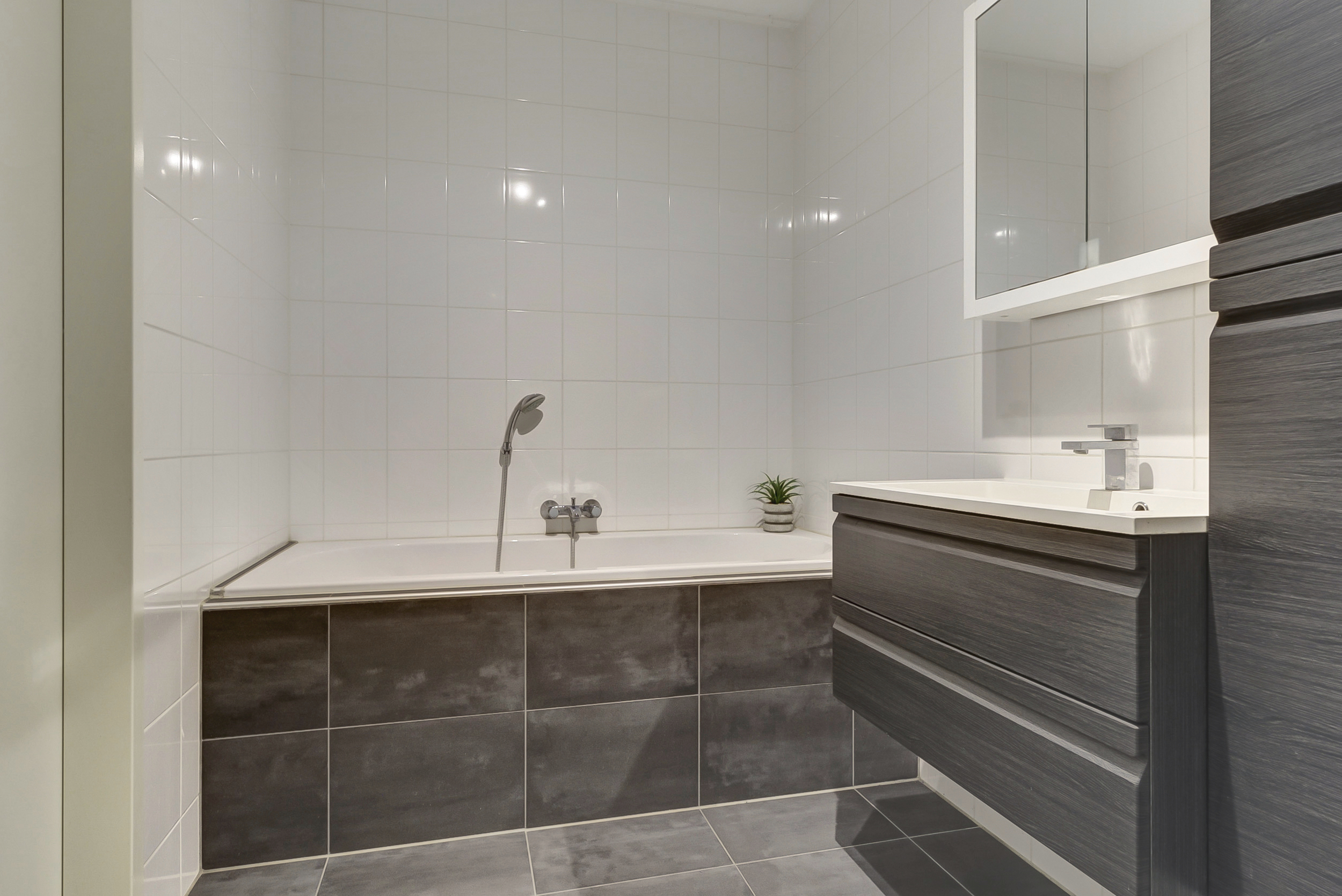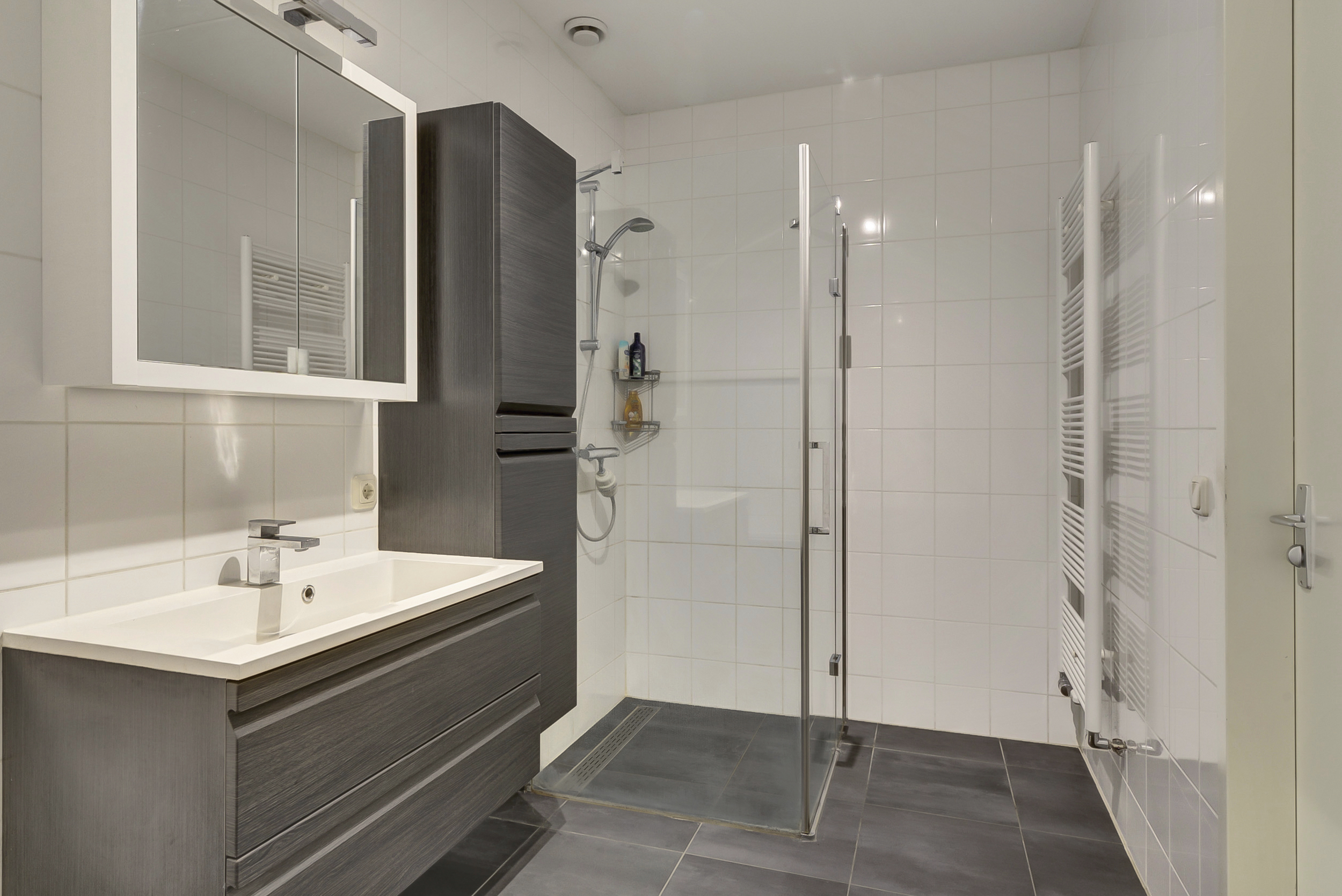 De badkamer is compleet uitgerust met een ligbad, aparte douche, wastafel en vloerverwarming. Daarnaast is er een separaat toilet op deze verdieping, wat zorgt voor extra comfort in het dagelijks gebruik.