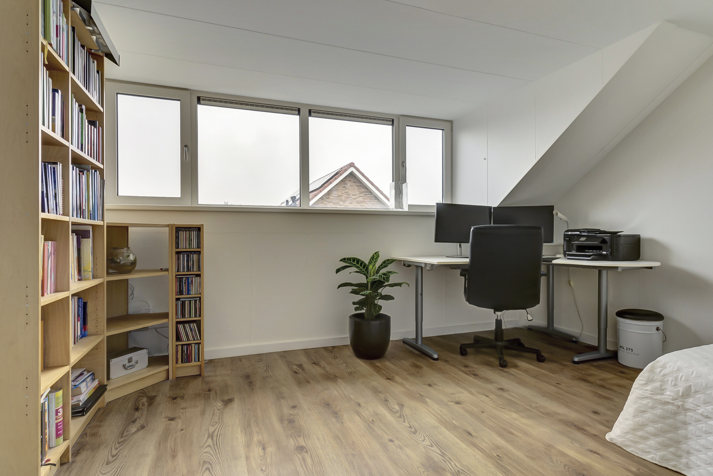 Ook de tweede verdieping verrast met ruimte. Via de overloop bereik je nog eens twee slaapkamers, waarmee het totaal op maar liefst vijf slaapkamers komt. Eén van deze kamers is voorzien van een brede dakkapel, wat zorgt voor extra licht en ruimte. Ideaal als tienerkamer, thuiswerkplek of hobbyruimte.