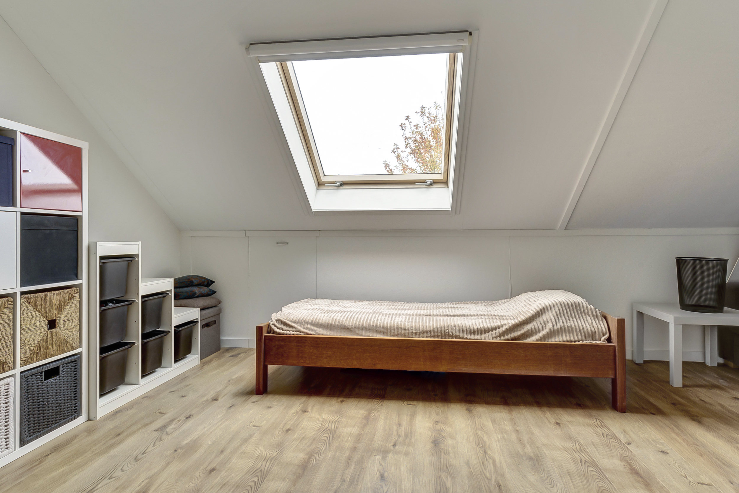 Verder vind je hier de was-/cv-ruimte en extra bergruimte. Bovendien is er een praktische bergvliering – perfect voor koffers en seizoensspullen.