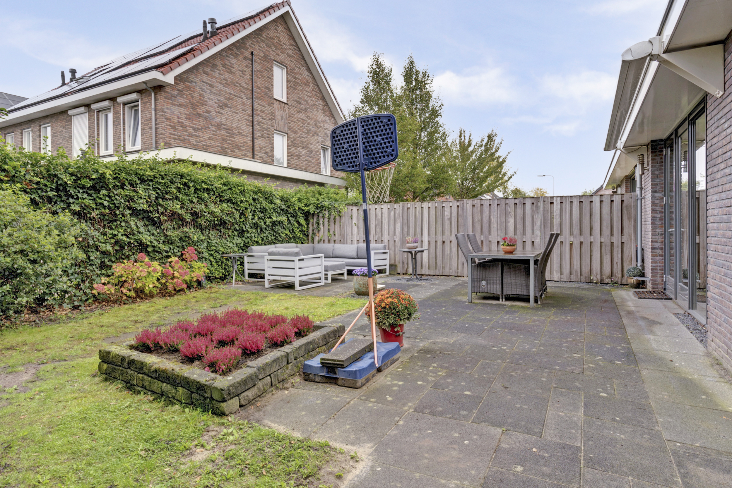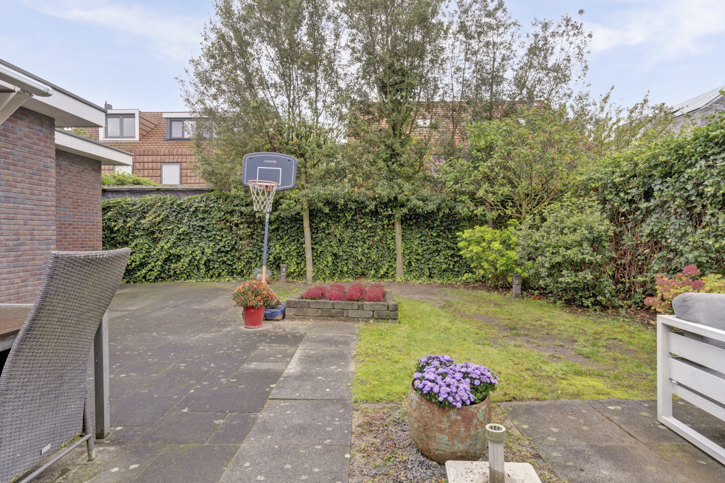 De achtertuin is gelegen op het westen, wat betekent dat je hier optimaal geniet van de middag- en avondzon. Of je nu wilt ontspannen na je werkdag of uitgebreid wilt barbecueën met vrienden: dit is de plek waar je buitenleven tot zijn recht komt. Dankzij de achterom is de tuin ook gemakkelijk vanaf de voorzijde bereikbaar.