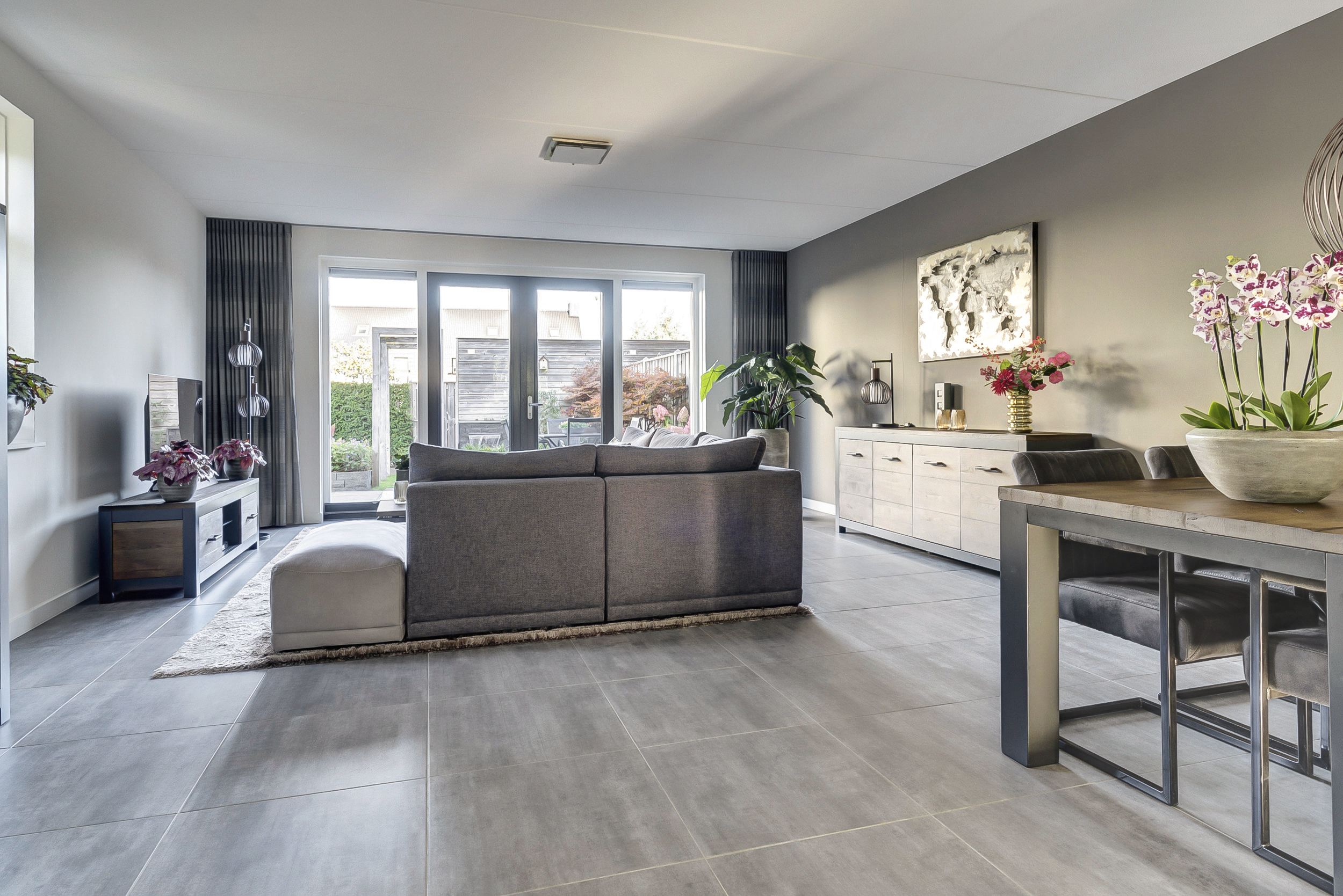 Begane grond voorzien van keramische tegelvloer met vloerverwarming