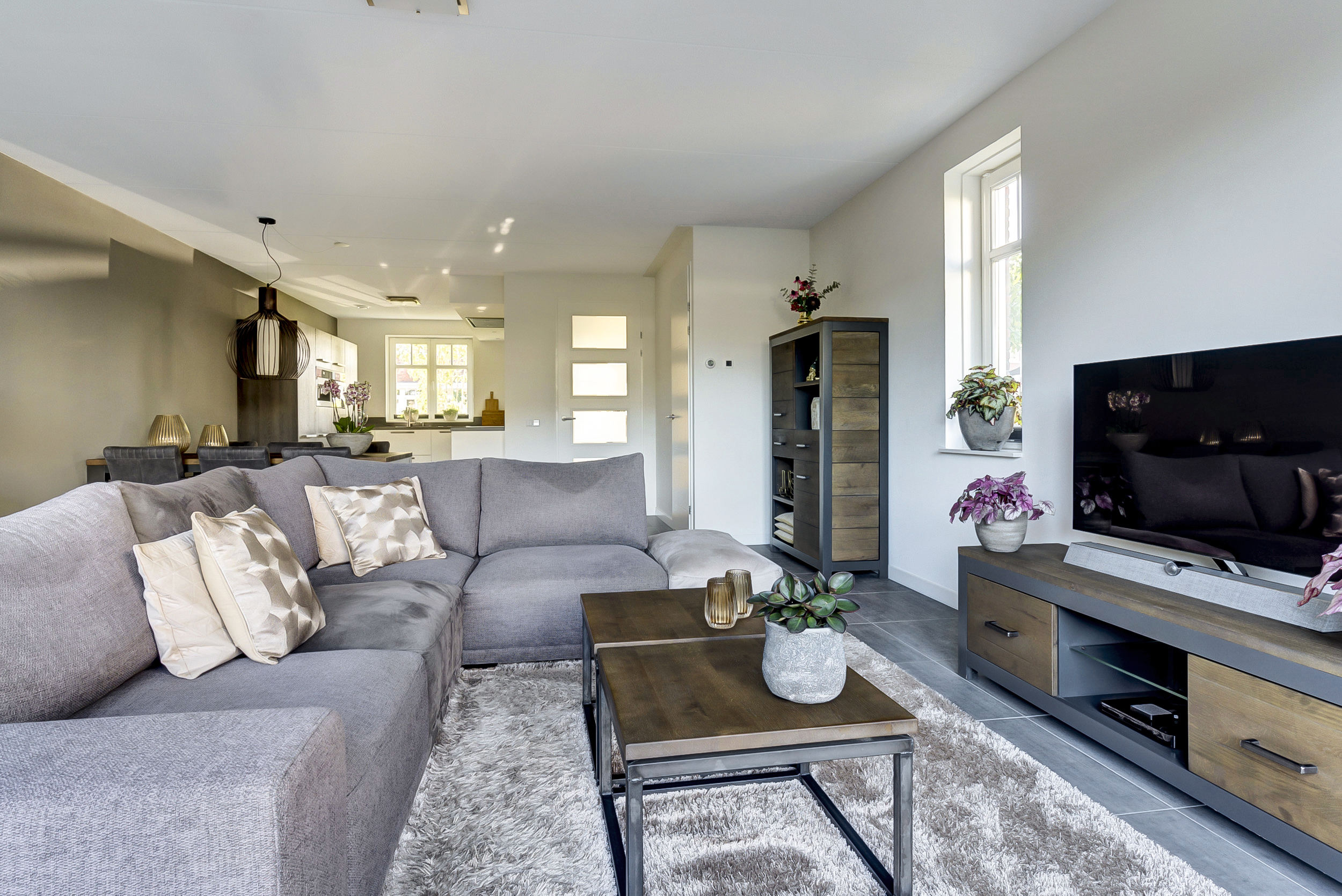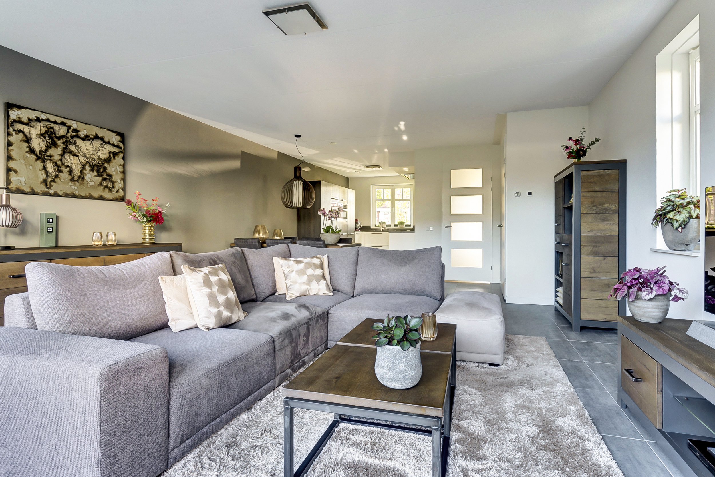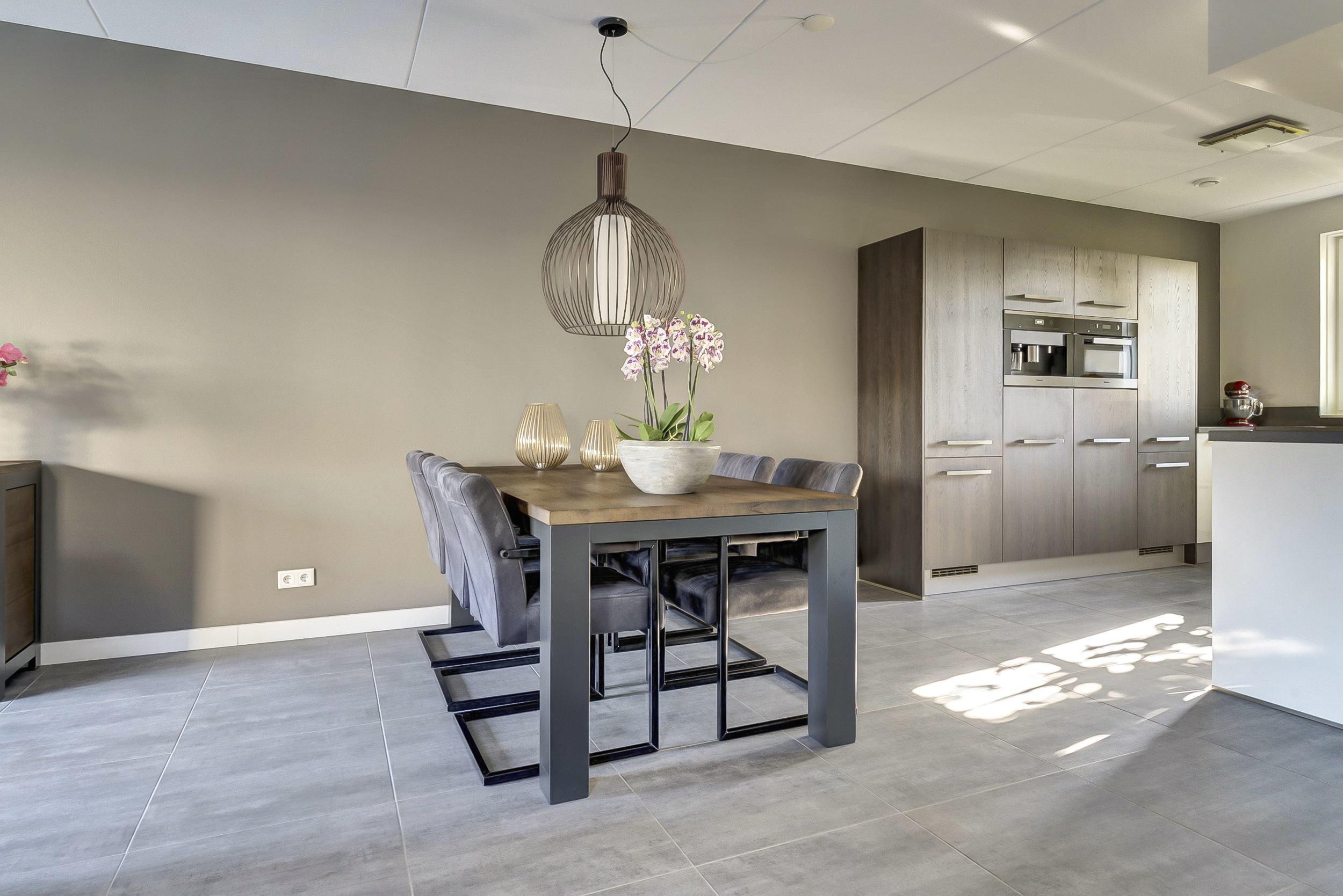 Binnen is gekozen voor hoogwaardige materialen en een luxe afwerking. Op de begane grond ligt een fraaie keramische tegelvloer met vloerverwarming: stijlvol, praktisch en comfortabel. De moderne keuken is in een ruime U-vorm opgesteld en beschikt over complete inbouwapparatuur. Hier kun je zonder moeite de mooiste diners bereiden, terwijl er voldoende plek is om gezellig samen te koken of te borrelen.