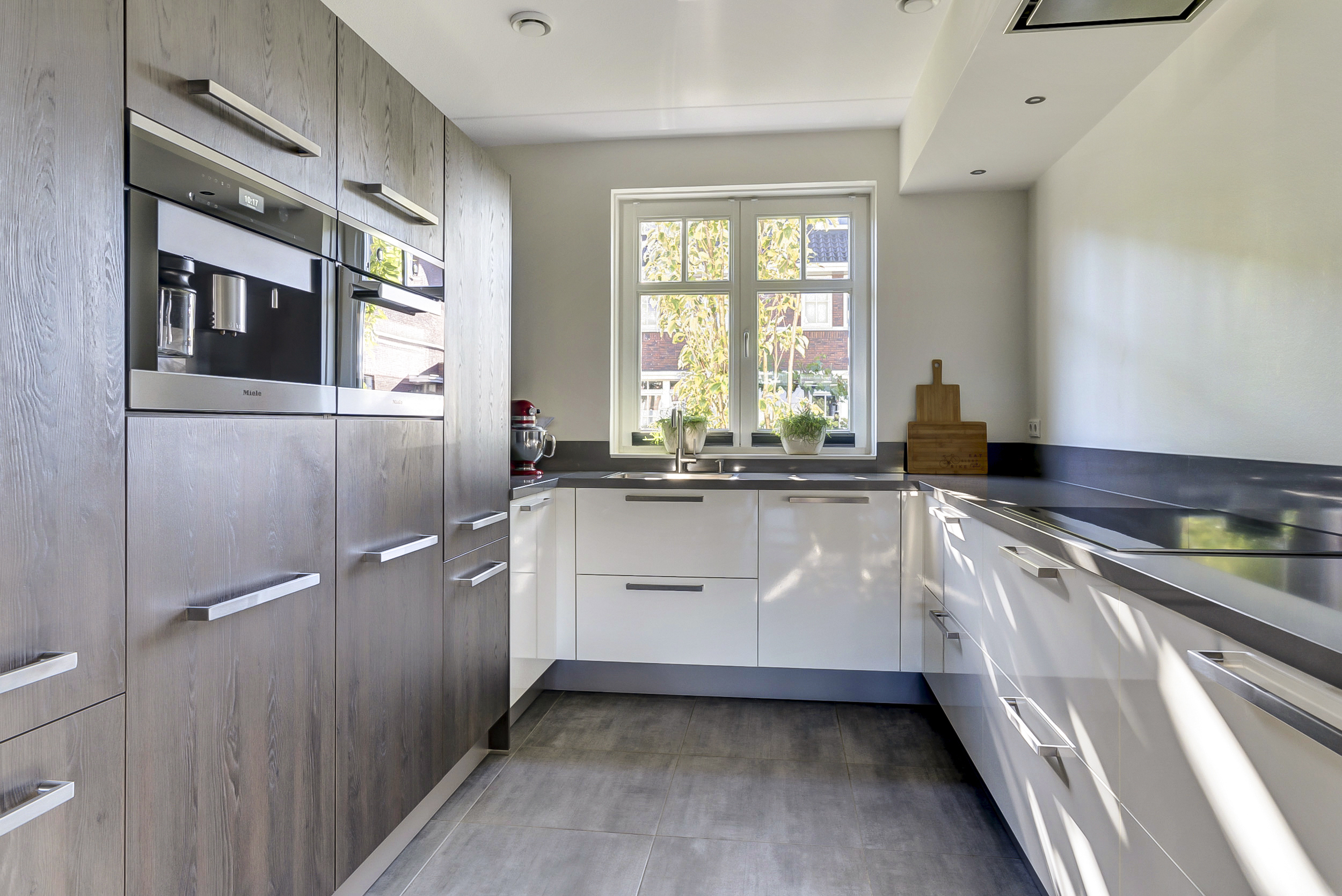 Via de zij-entree kom je in de hal met toilet. De uitgebouwde woonkamer van 42 m² is een heerlijke leefruimte met dubbele tuindeuren, een extra raam in de zijgevel en een praktische trapkast. De open keuken in U-opstelling is zeer luxe uitgevoerd en voorzien van complete inbouwapparatuur.