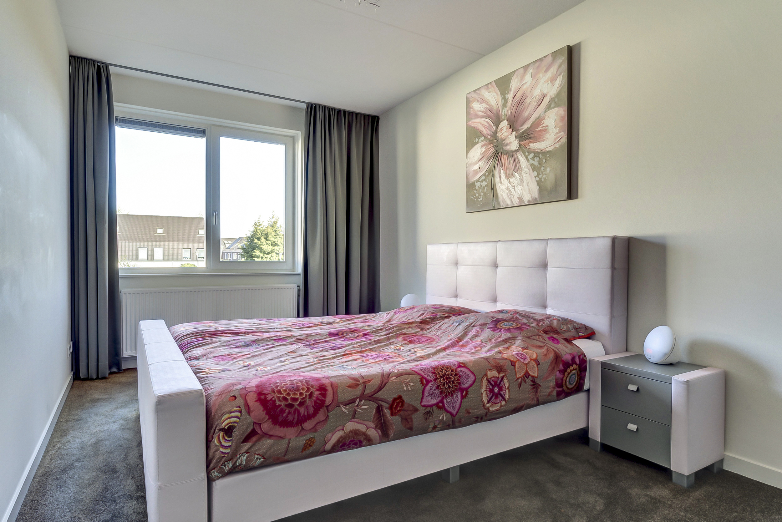 De slaapkamers aan de achterzijde hebben elektrische rolluiken