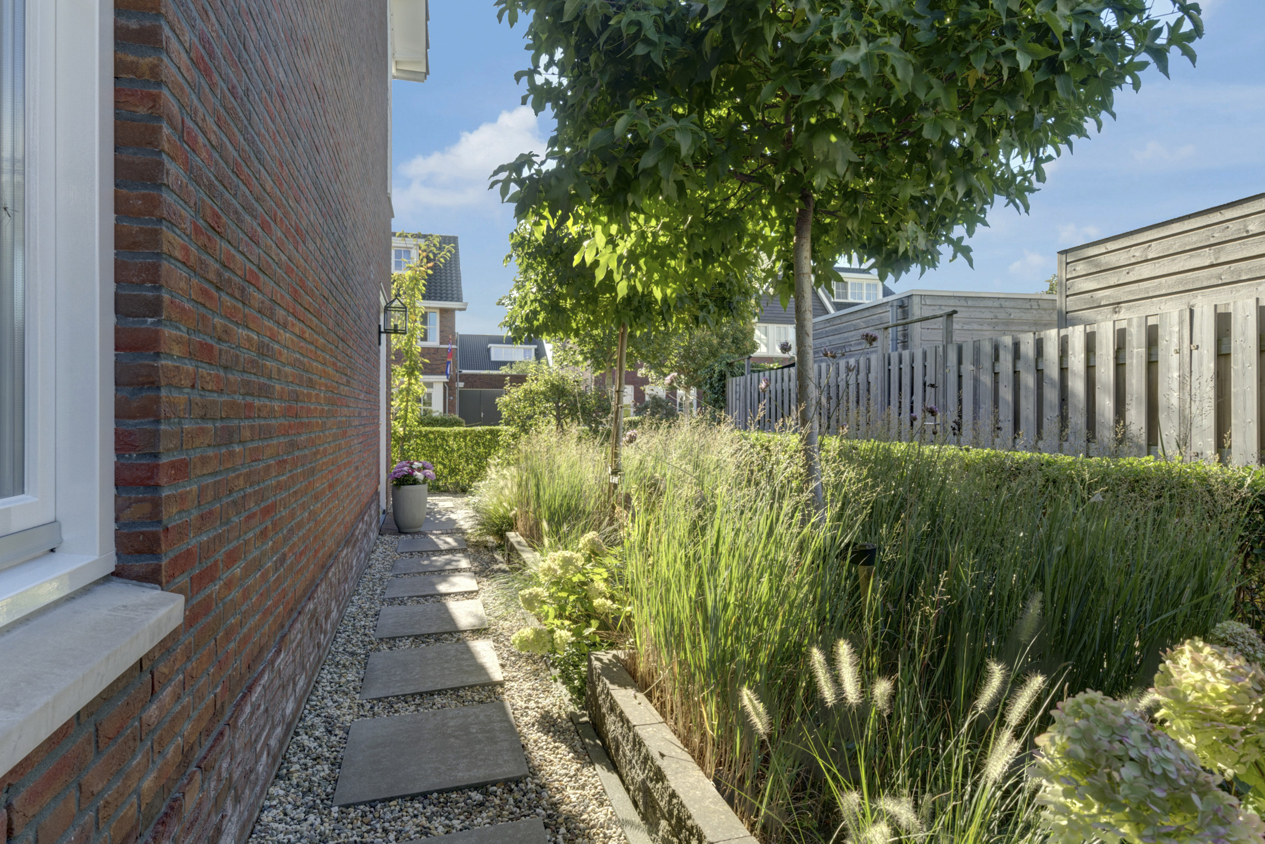 De tuin rondom de woning is een ware eyecatcher. Als hoekwoning geniet je hier van extra ruimte en privacy. De tuin is groot, prachtig aangelegd en zeer zorgvuldig onderhouden. Dankzij de vrije ligging is er altijd wel een plekje in de zon of juist in de schaduw te vinden. Verder is er een achterom aanwezig, evenals een berging voor fietsen en tuingereedschap. Dit maakt het buitenleven niet alleen mooi, maar ook praktisch.