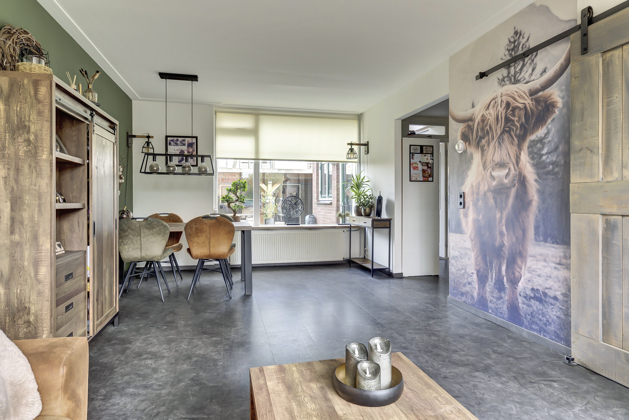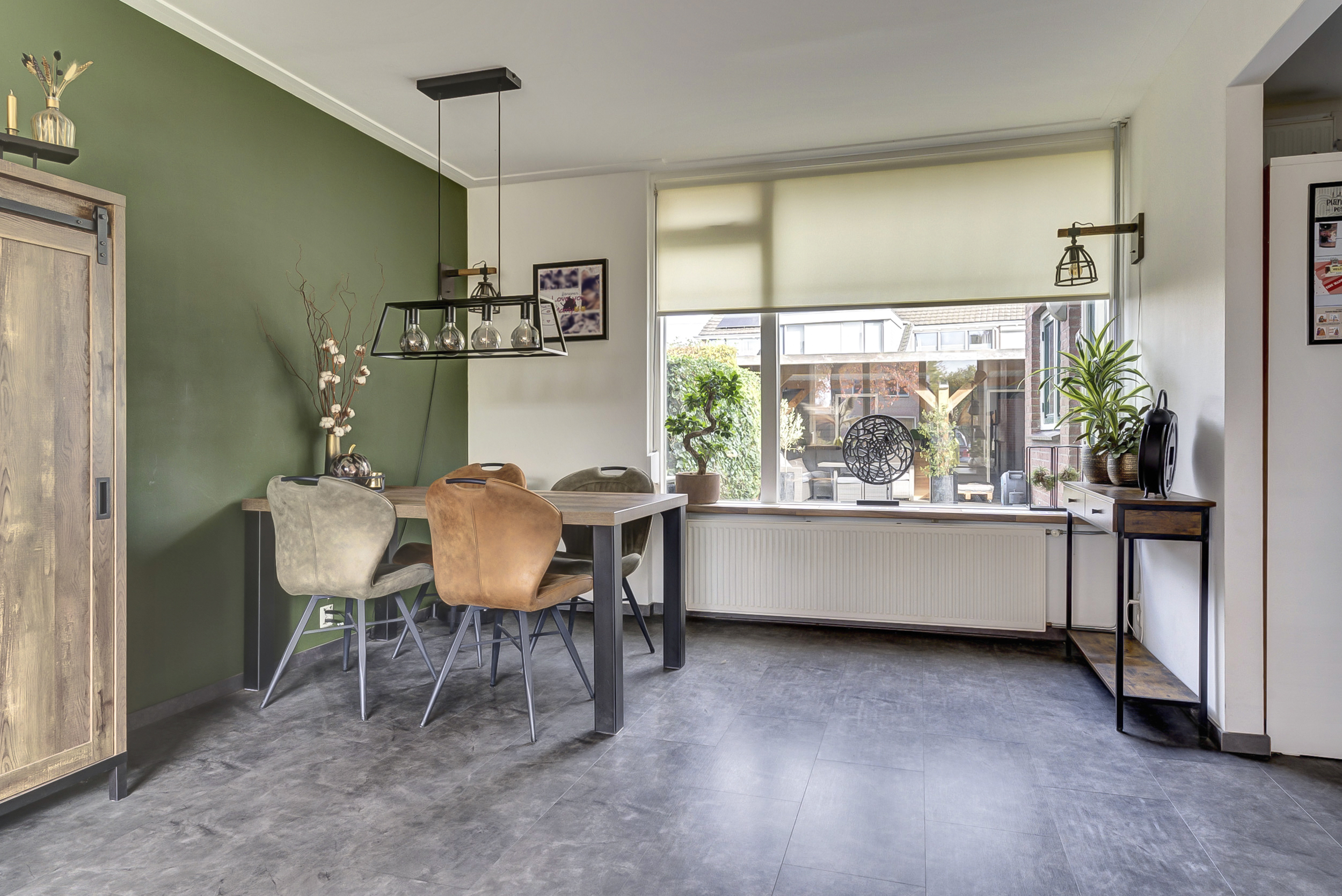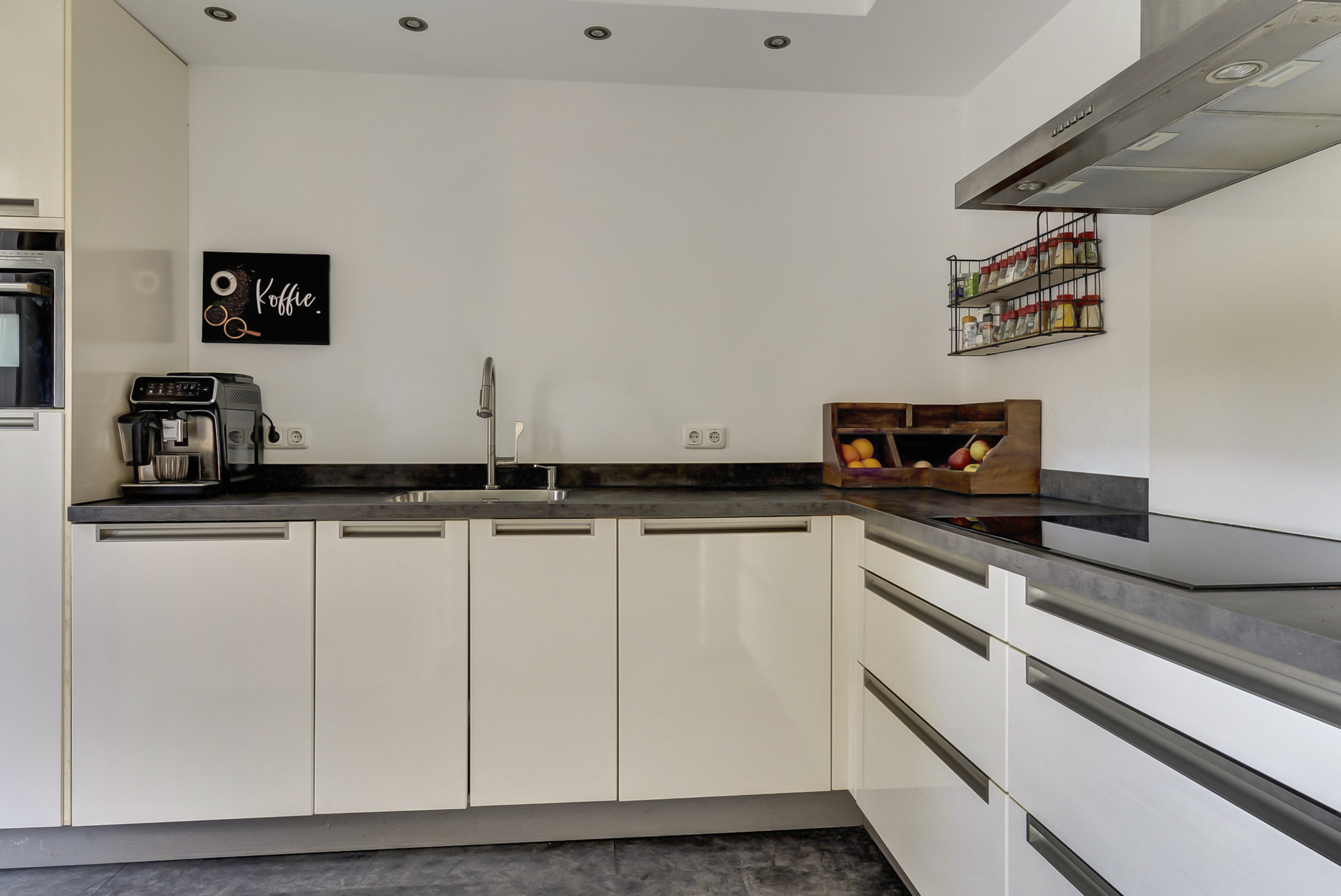 Via de entree kom je in de hal met meterkast en een toilet. De gezellige woonkamer is licht en prettig ingedeeld, met ruimte voor een comfortabele zithoek en een grote eettafel. De dichte keuken aan de achterzijde (vernieuwd in 2014) is voorzien van moderne inbouwapparatuur en biedt volop werk- en kastruimte. Aansluitend bevindt zich de aangebouwde bijkeuken, waar je de wasmachine en droger kwijt kunt en extra bergruimte hebt – een praktische toevoeging die in het dagelijks gebruik echt het verschil maakt.