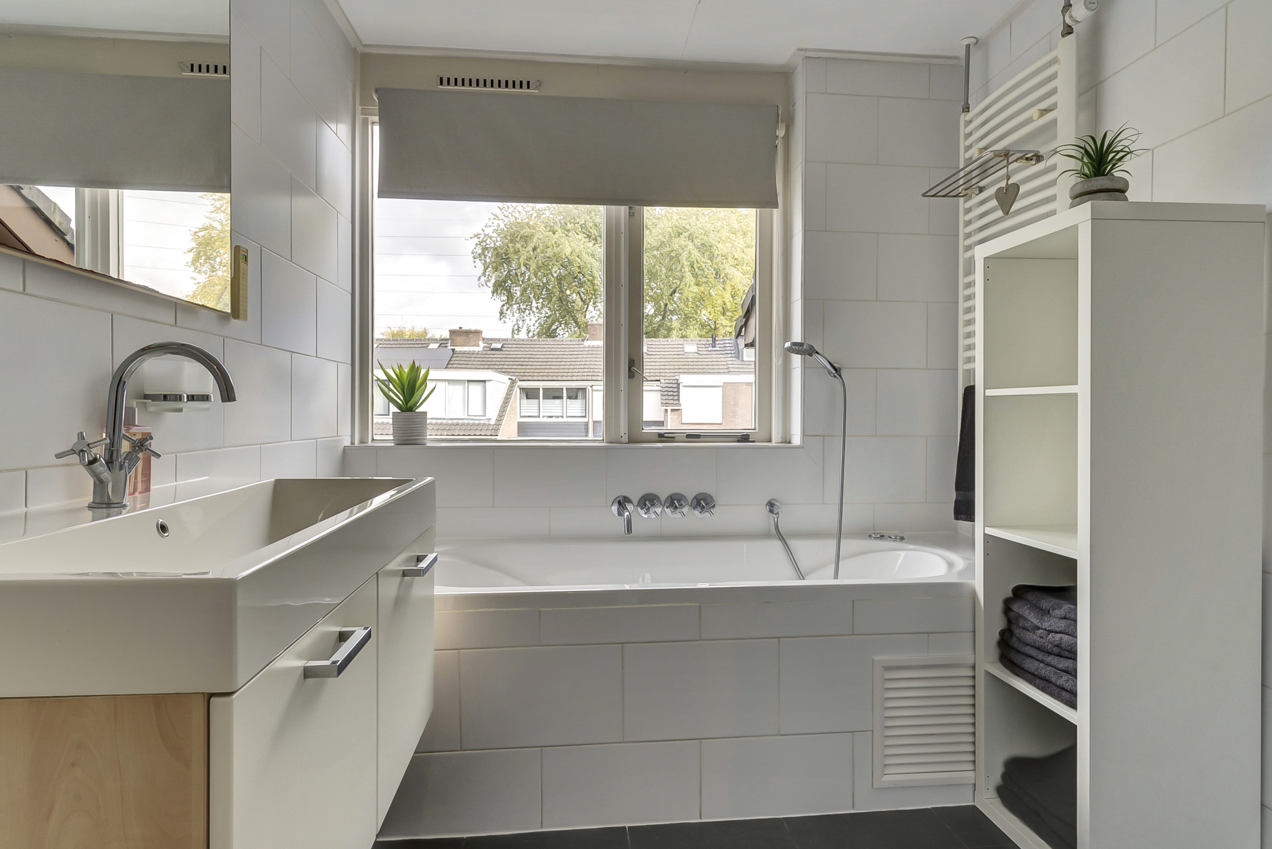 Op de eerste verdieping tref je een overloop met toegang tot twee slaapkamers, een ruime badkamer en een separaat toilet. Van een voormalige slaapkamer is een heerlijke, grote badkamer gemaakt – met ligbad, inloopdouche en een modern wastafelmeubel. Hier kom je echt tot rust na een lange dag. De voormalige douche is omgebouwd tot een extra ruim toilet, wat zorgt voor extra comfort en gemak.