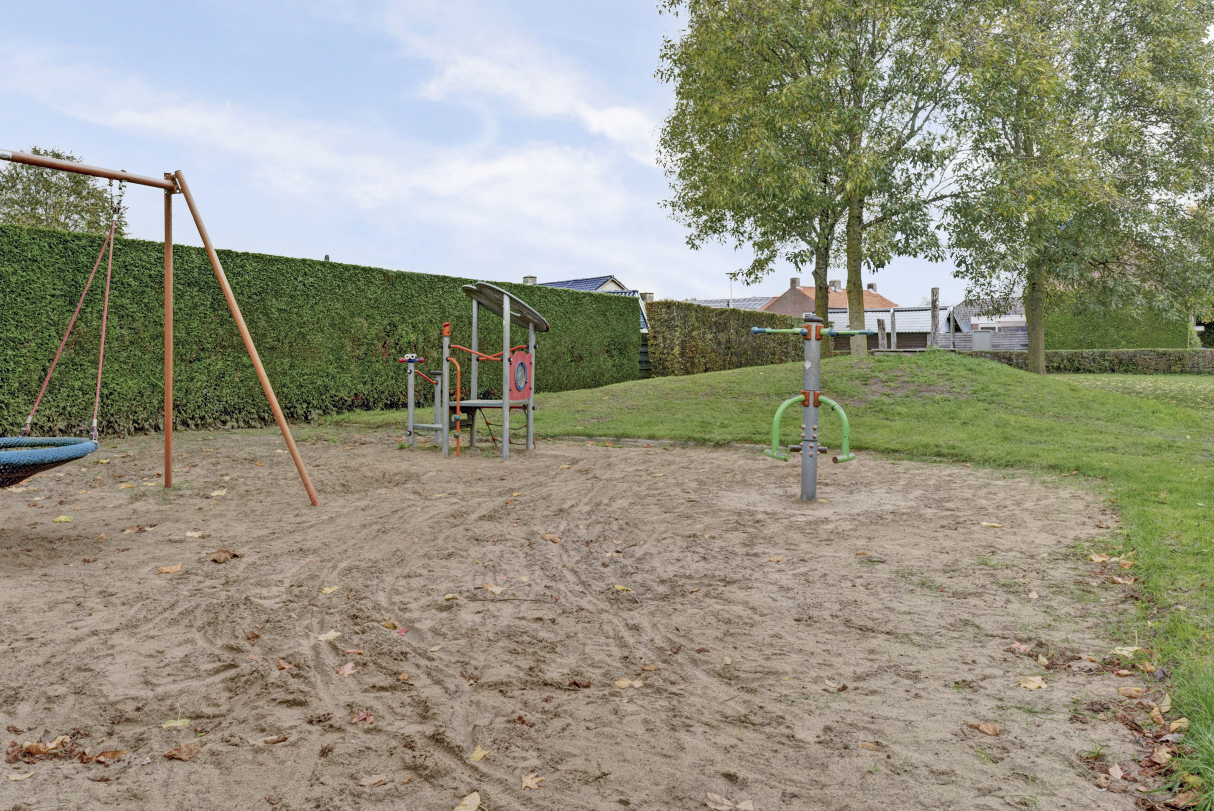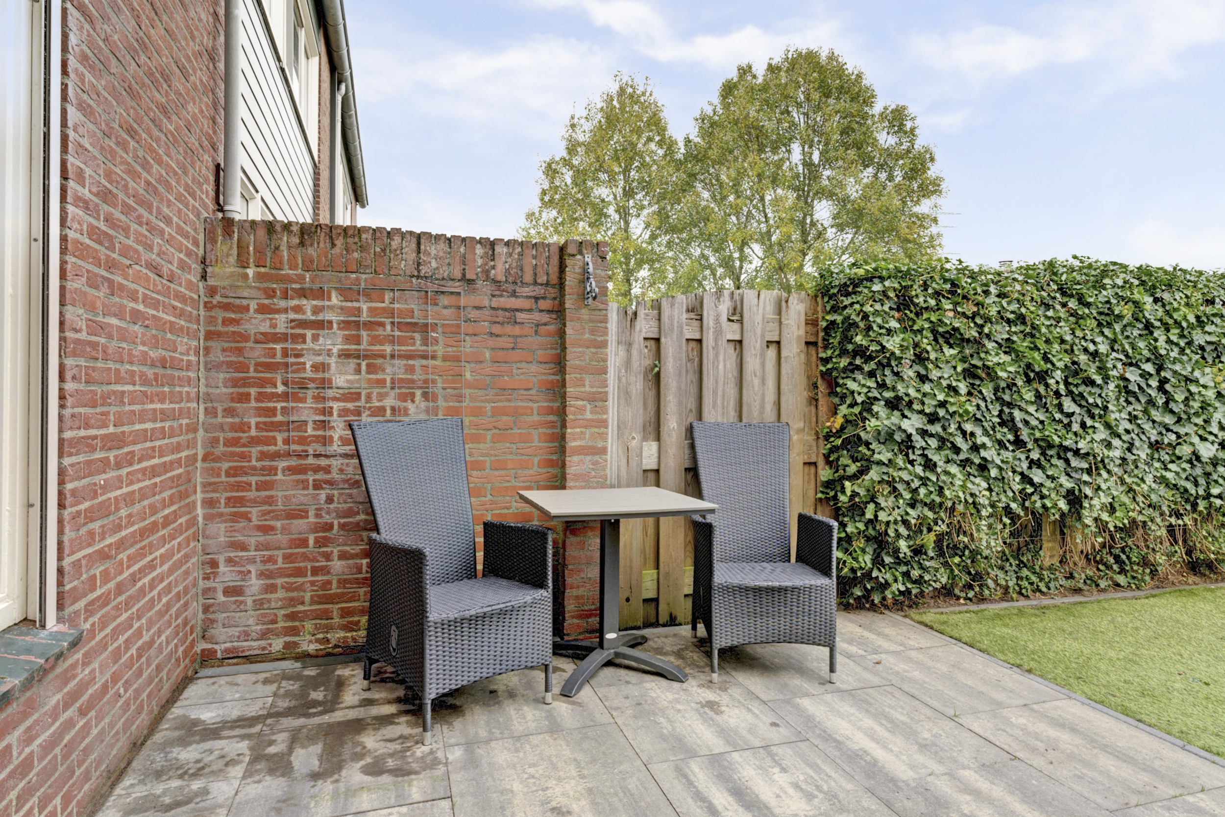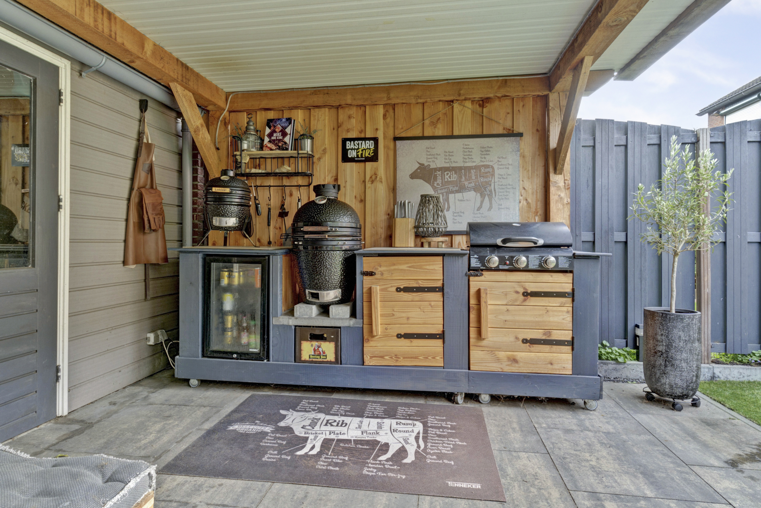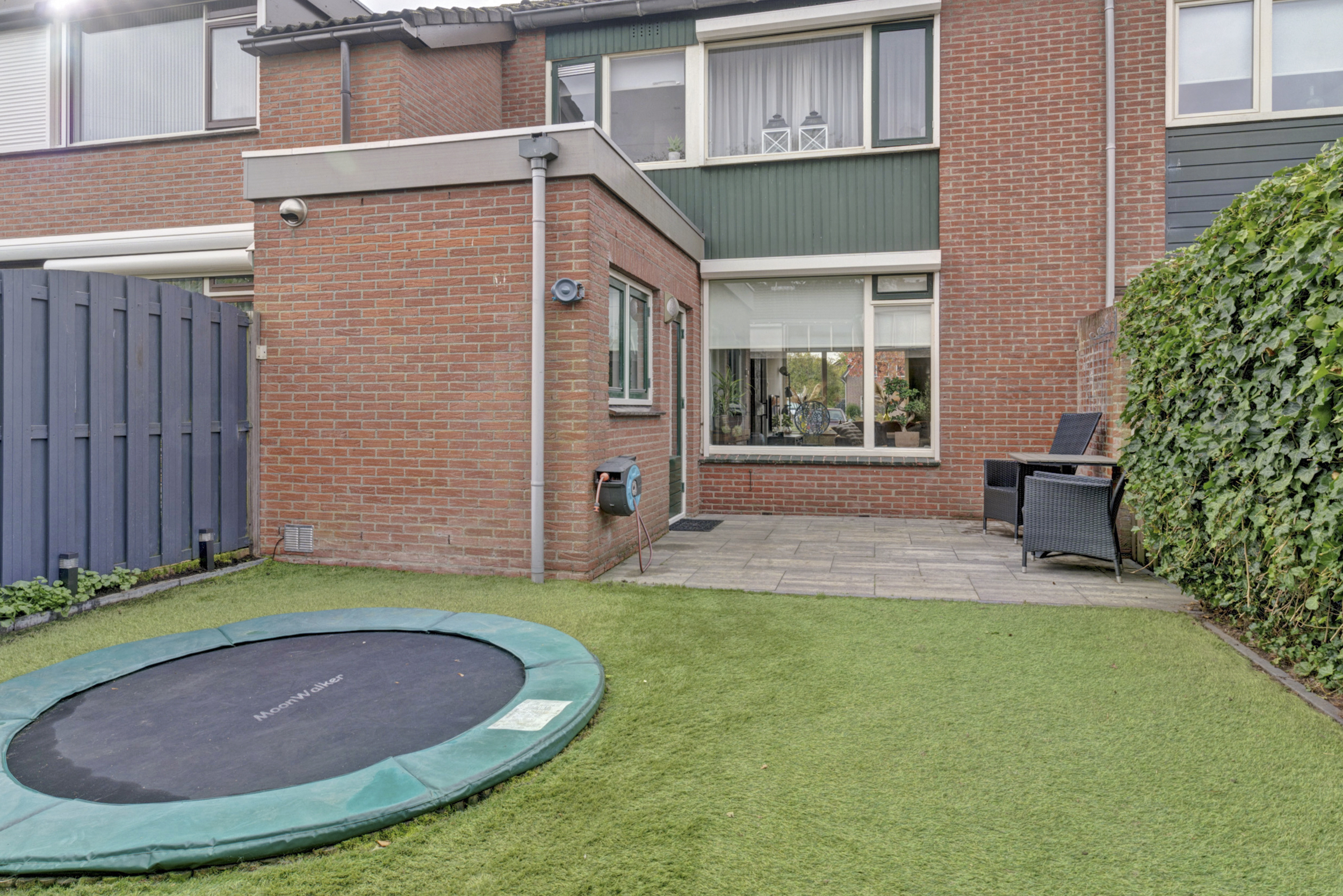 Vanuit de bijkeuken loop je zo de achtertuin in. Deze is fraai aangelegd, onderhoudsvriendelijk en voorzien van een ruime overkapping waar je het hele jaar door heerlijk kunt zitten. Of het nu zomer of herfst is, dit is de plek om te ontspannen met een kop koffie of een goed glas wijn. Achter in de tuin vind je een berging voor fietsen en tuingereedschap, en via de achterom bereik je gemakkelijk de straatzijde.
