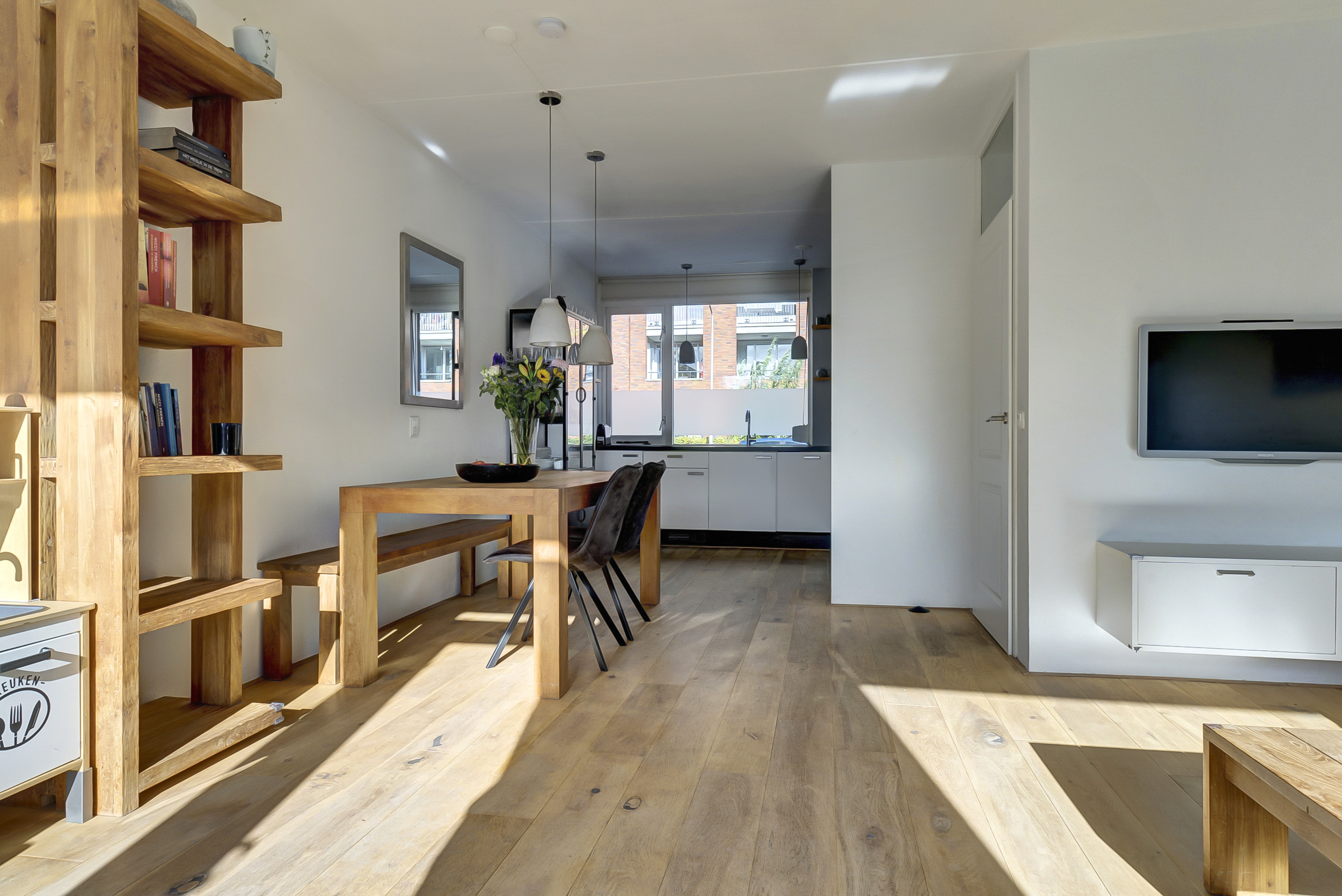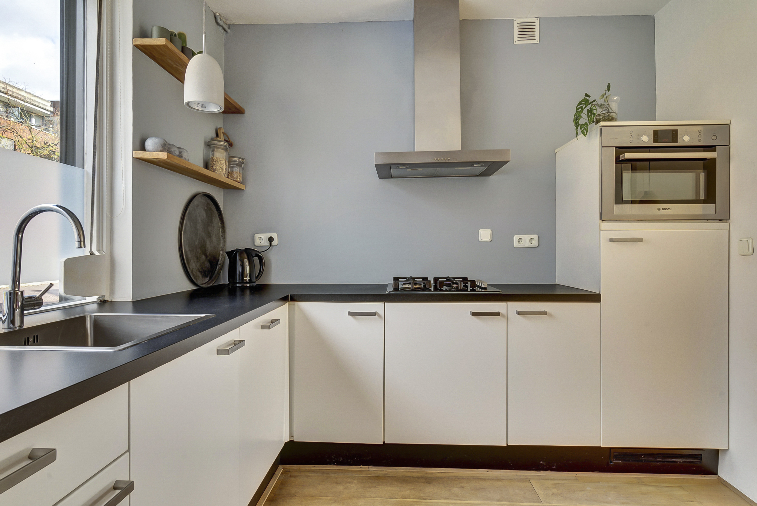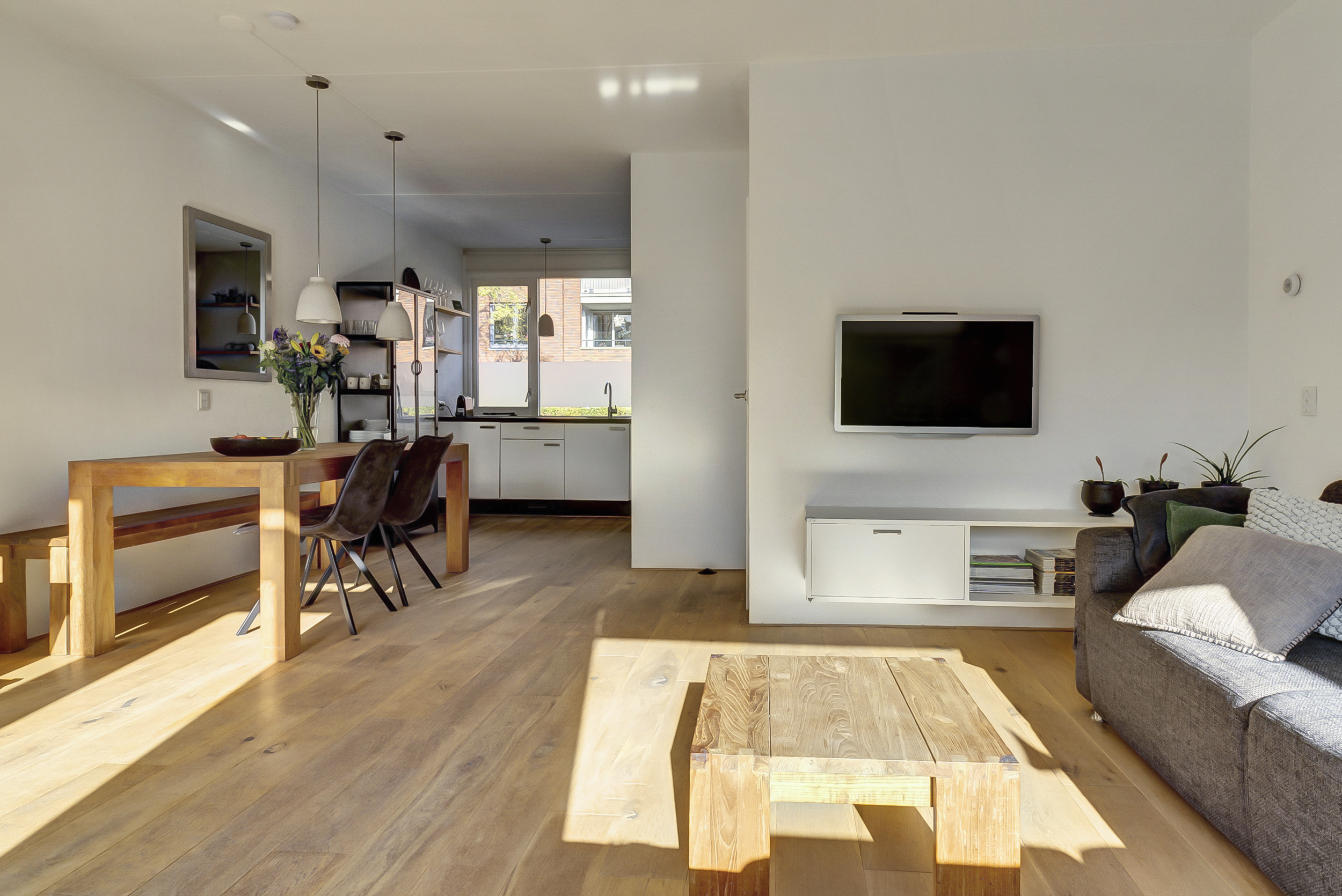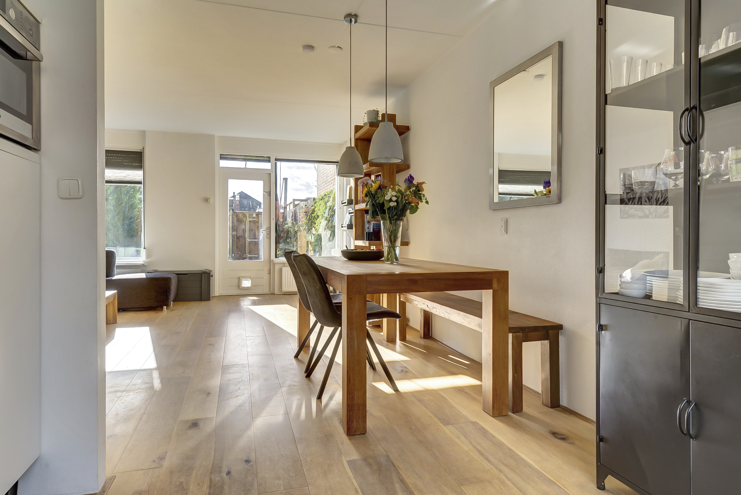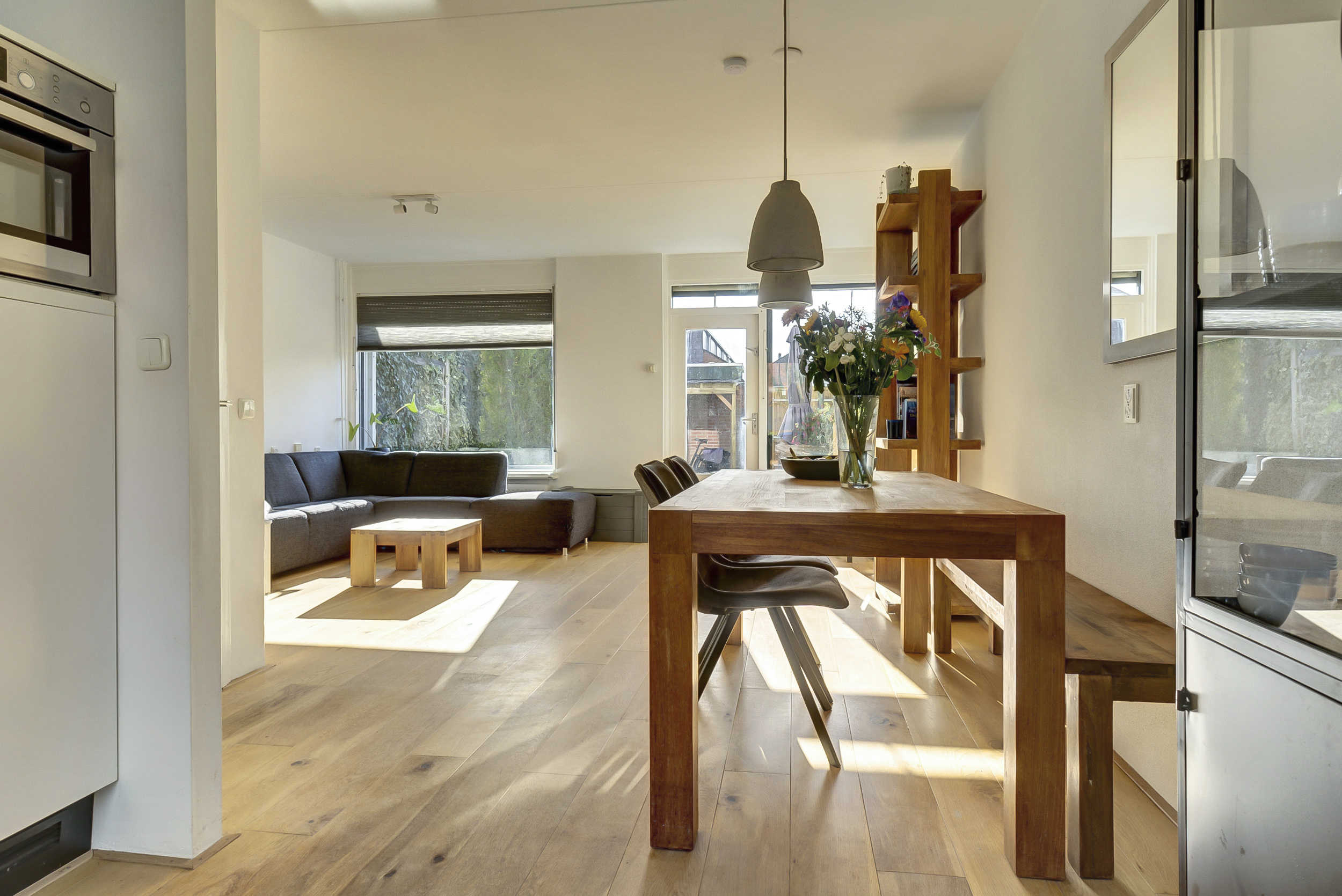 Je komt binnen in de hal met de trapopgang en het toilet. Vanuit de hal stap je de lichte woonkamer van circa 25 m² binnen – een fijne ruimte met prettige lichtinval en genoeg plek voor een zit- en eethoek. De zonnige tuin is vanuit de woonkamer bereikbaar. Aan de voorzijde bevindt zich de open keuken, die in 2014 is vernieuwd en is uitgerust met een hoekopstelling en diverse inbouwapparatuur.