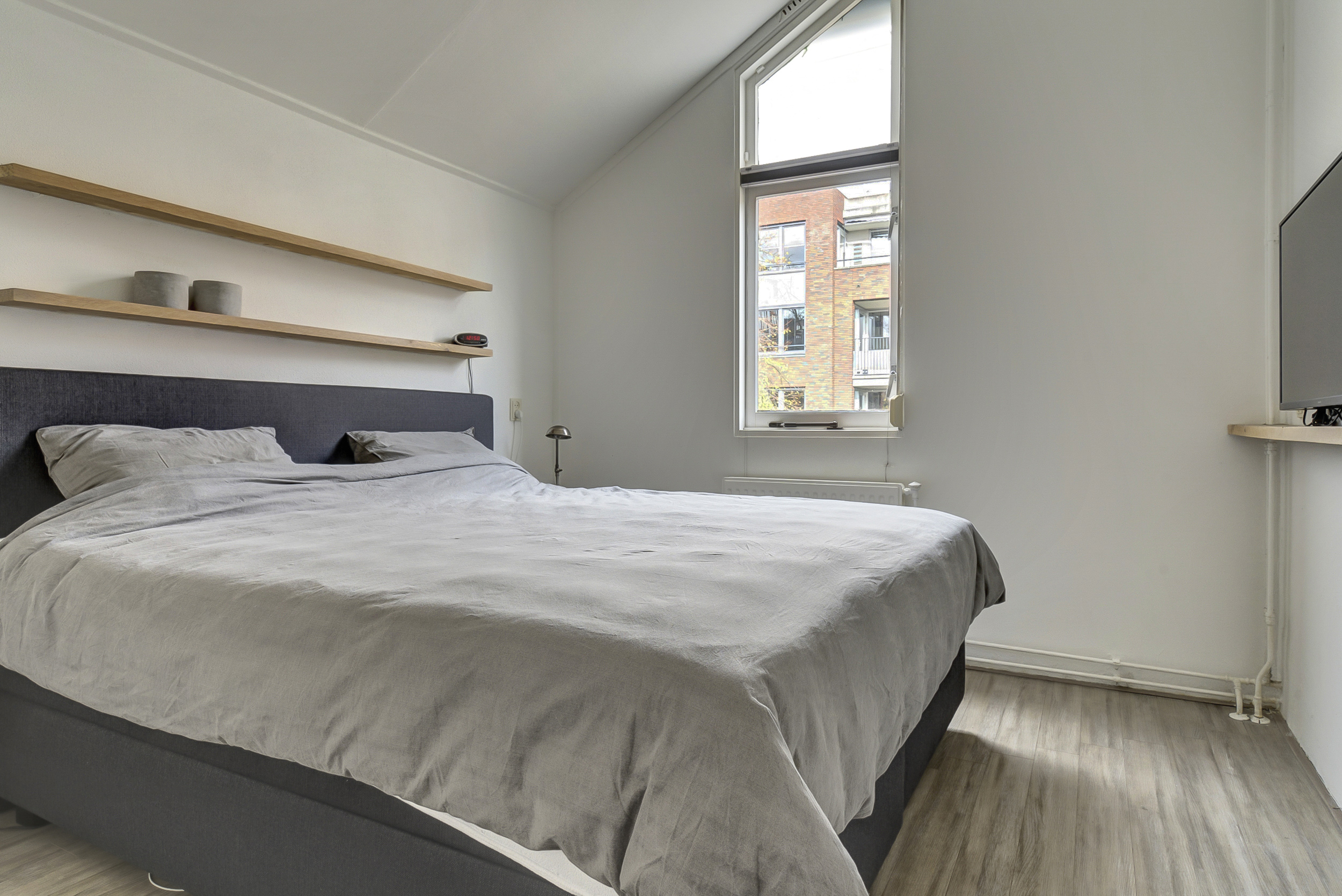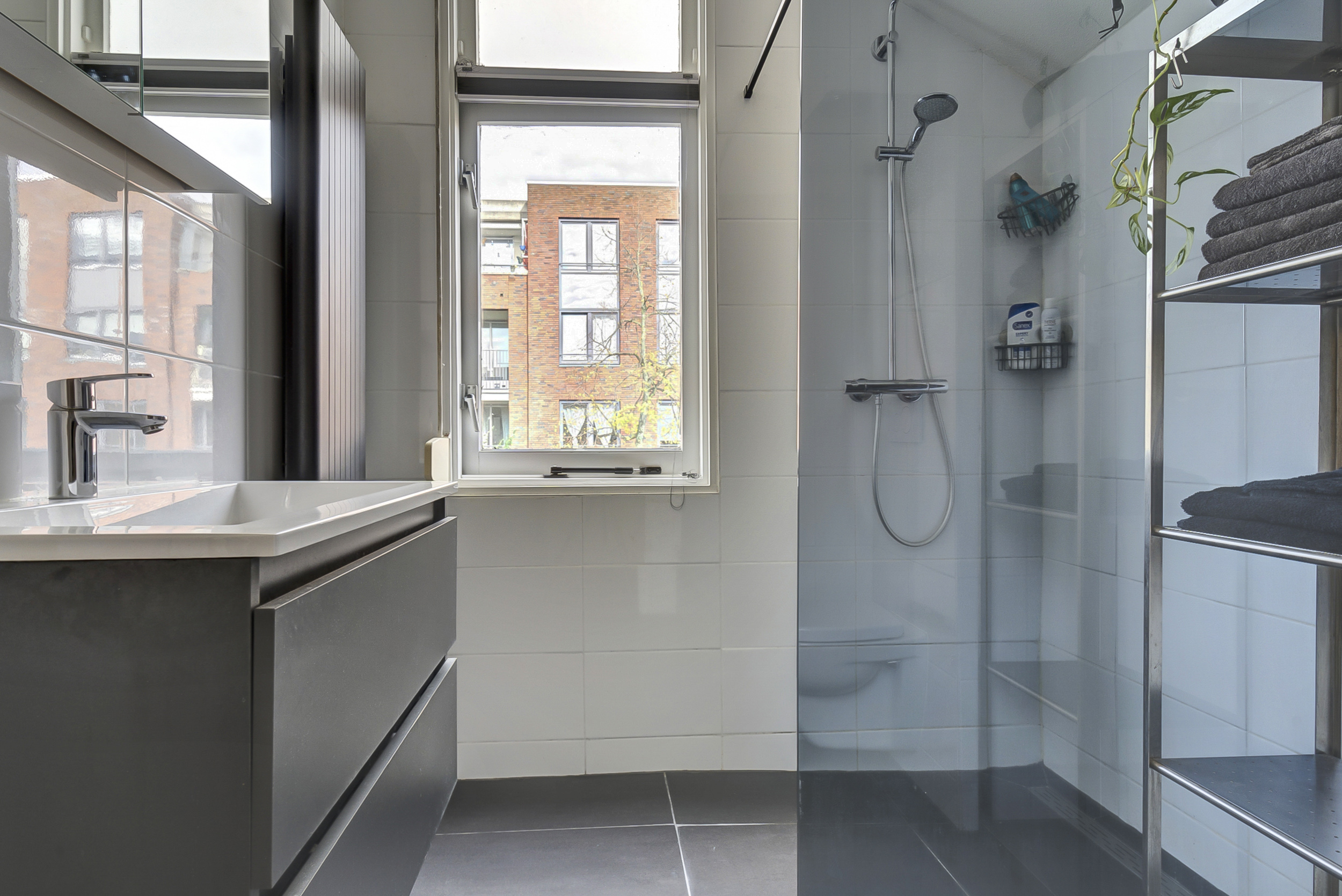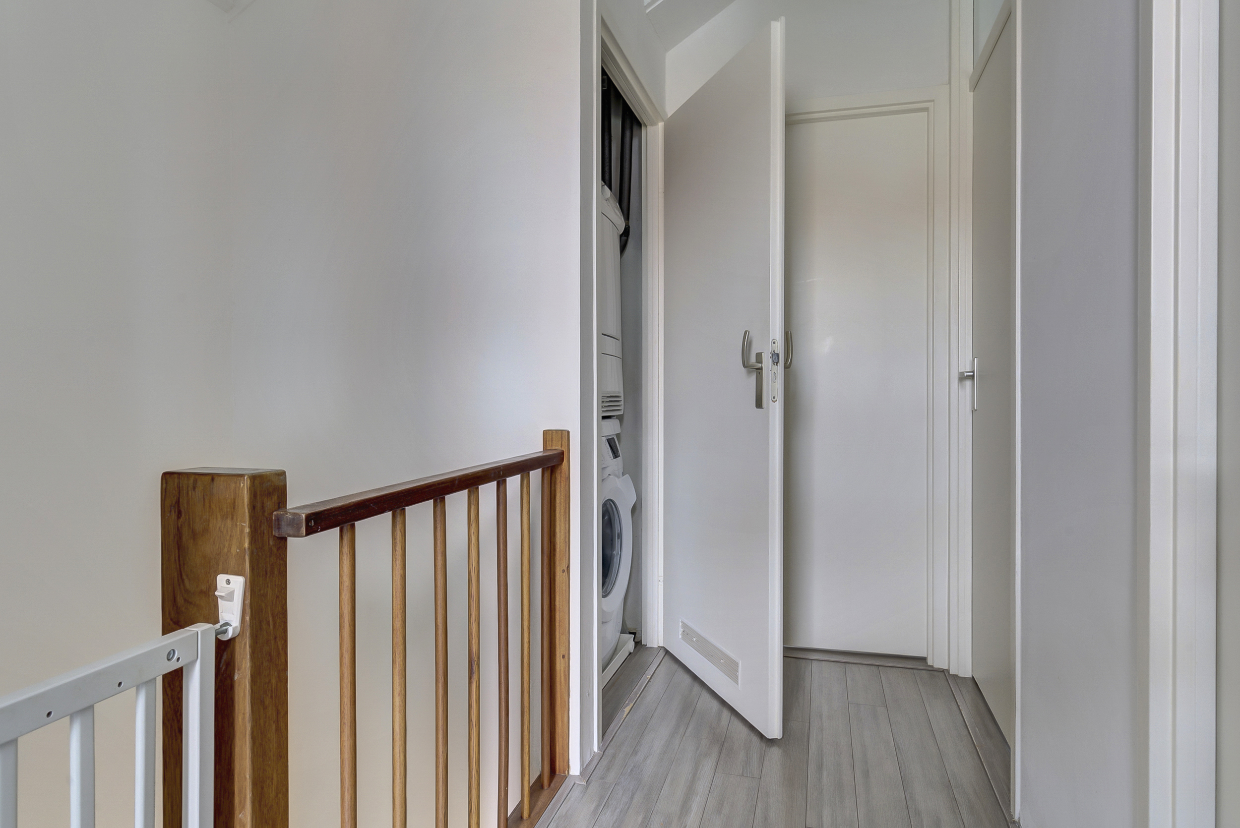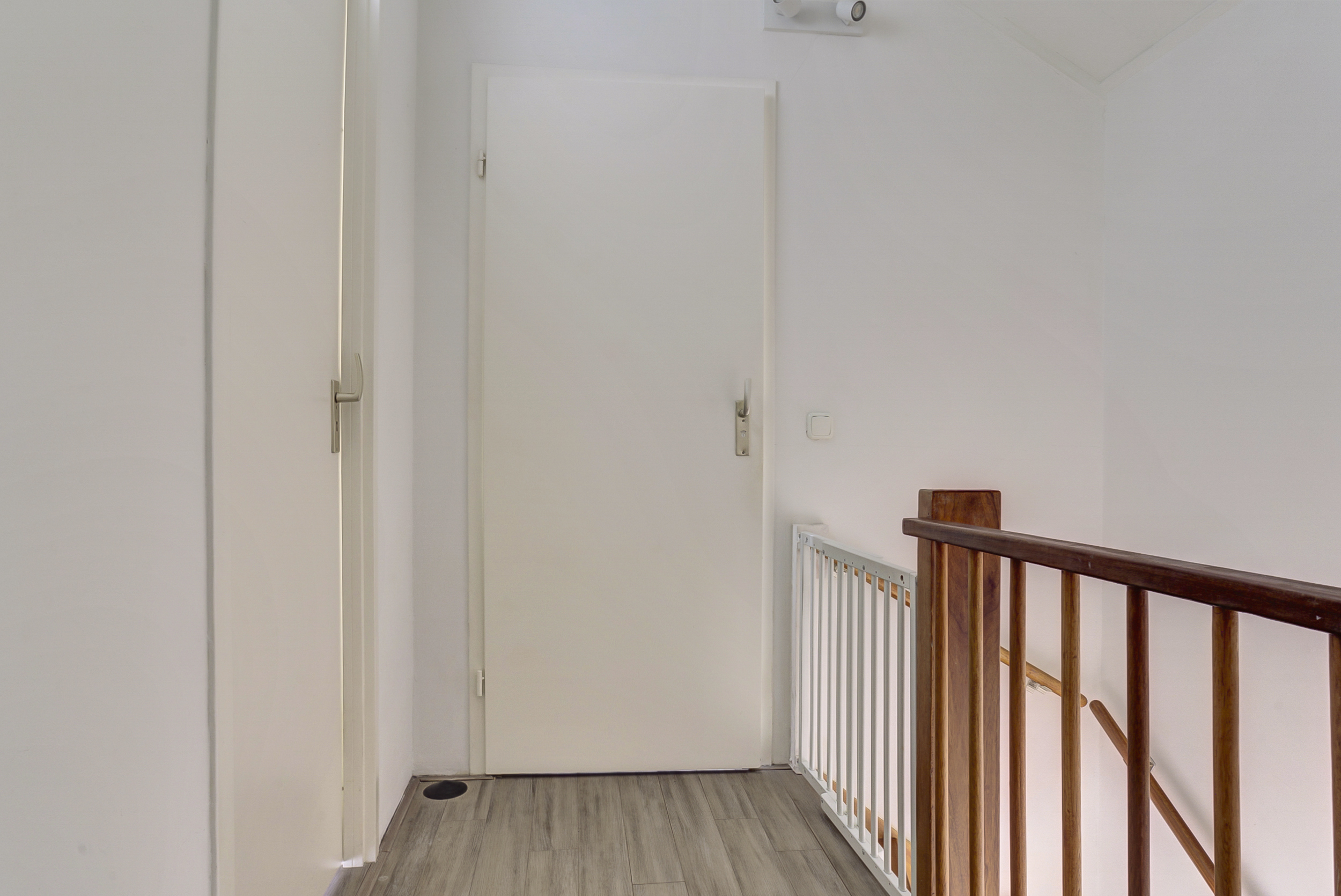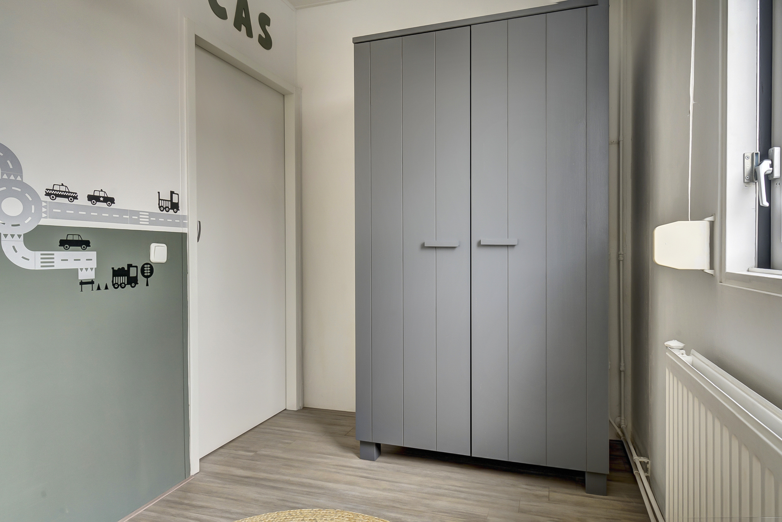 Op de eerste verdieping vind je de overloop met een handige cv-/waskast en drie slaapkamers. Eén van de oorspronkelijke grote slaapkamers is opgedeeld in een kinderkamer en een werkruimte – een slimme oplossing die ook eenvoudig weer terug te brengen is naar één ruime kamer. De badkamer is in 2018 vernieuwd en voorzien van een douche, toilet en wastafel met meubel. Alles is verzorgd uitgevoerd en direct te gebruiken.