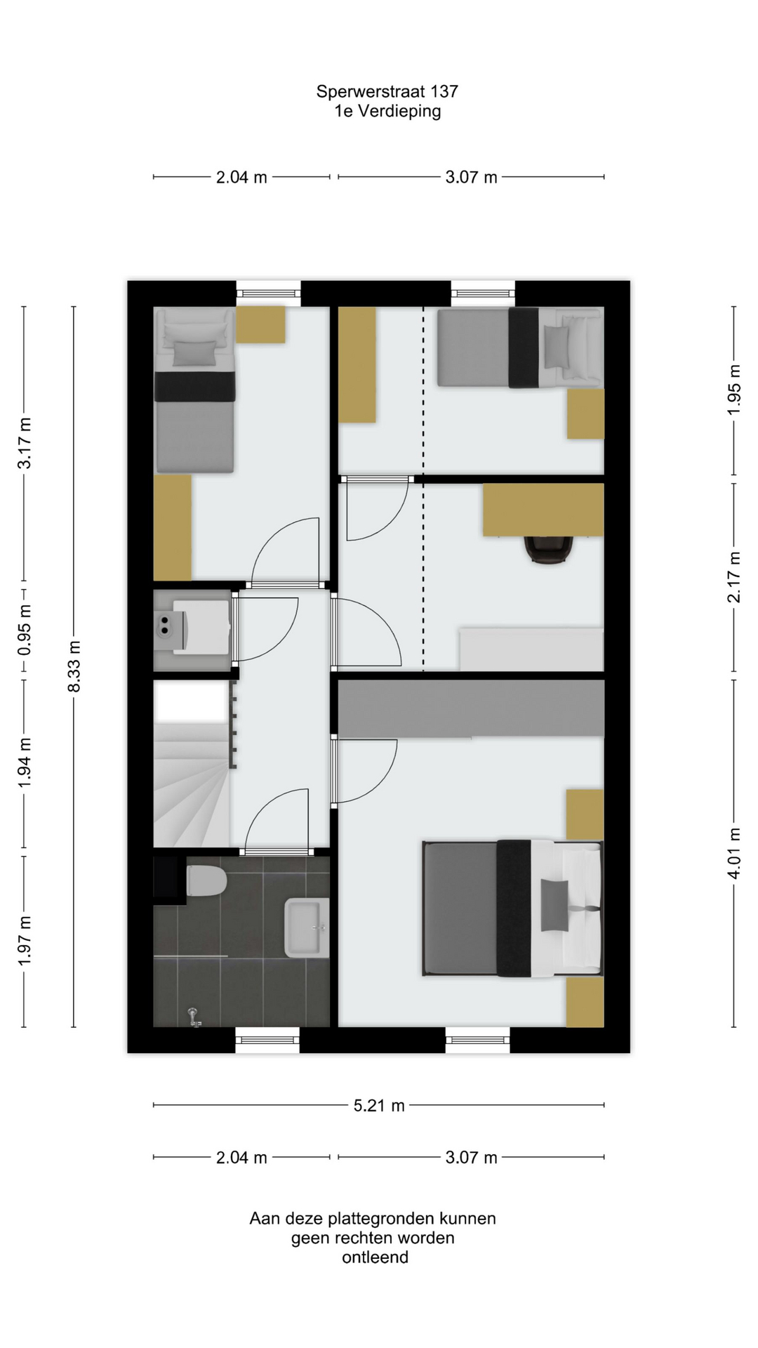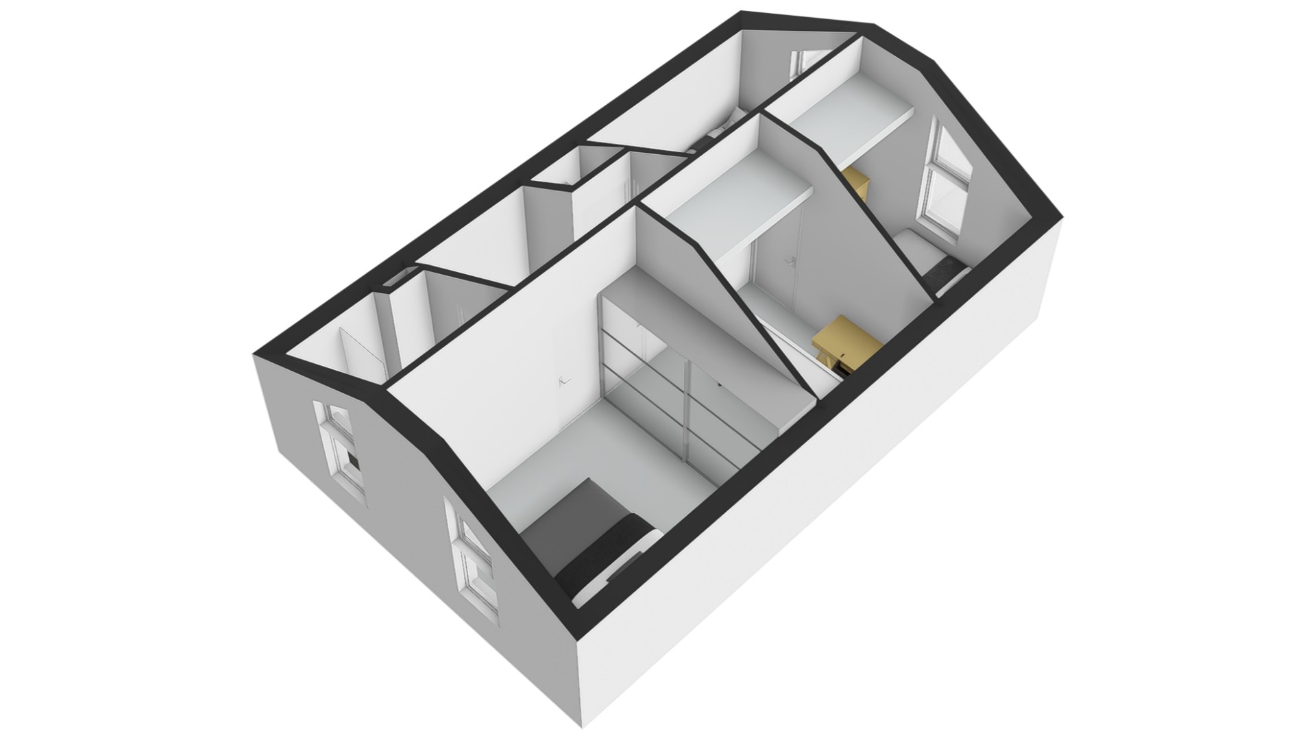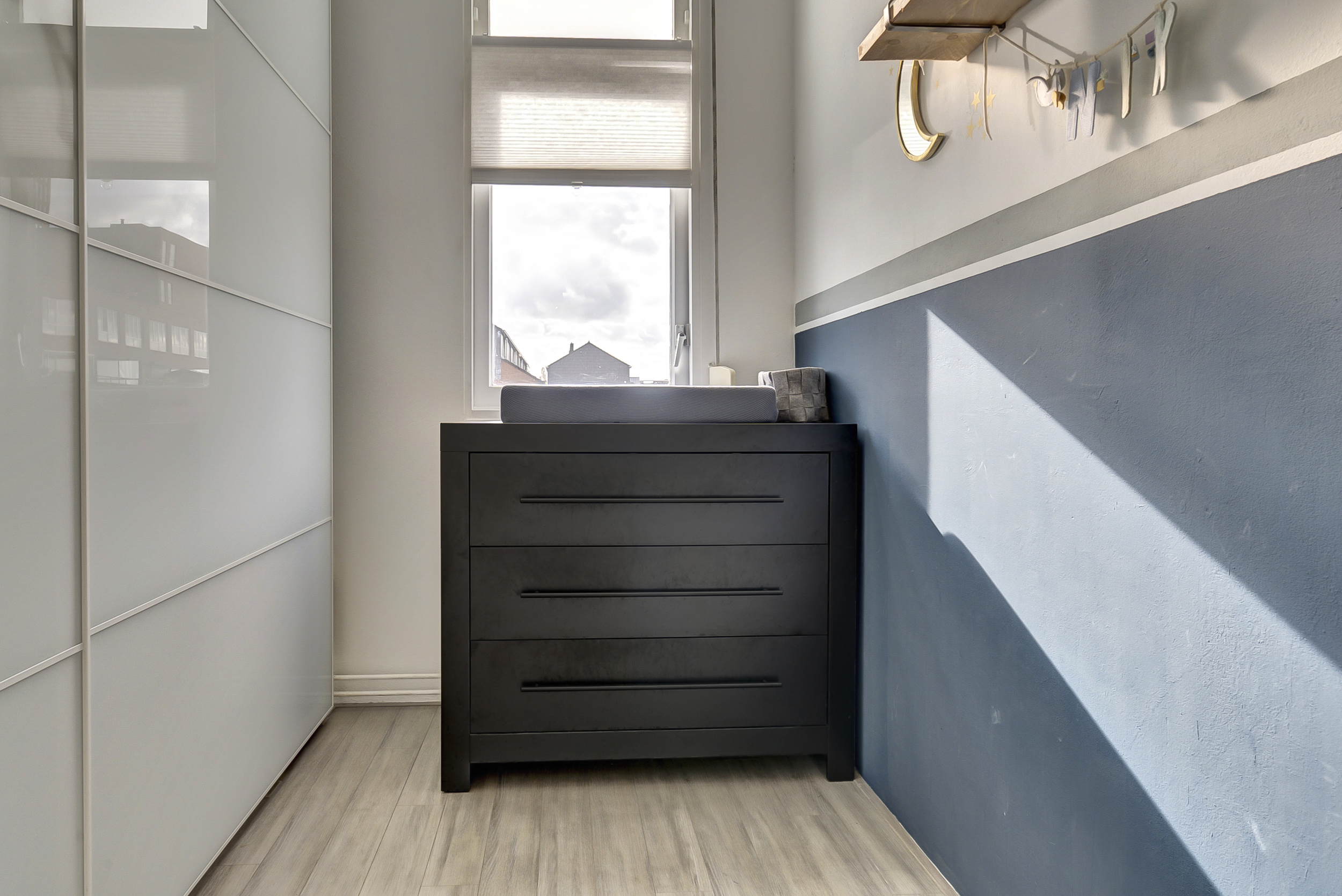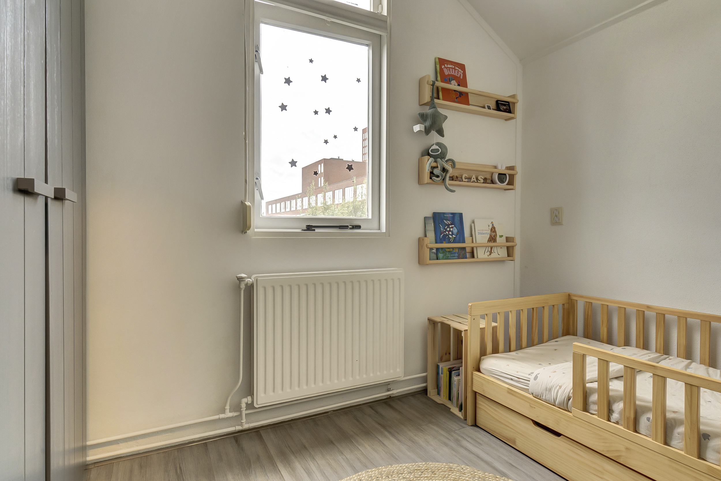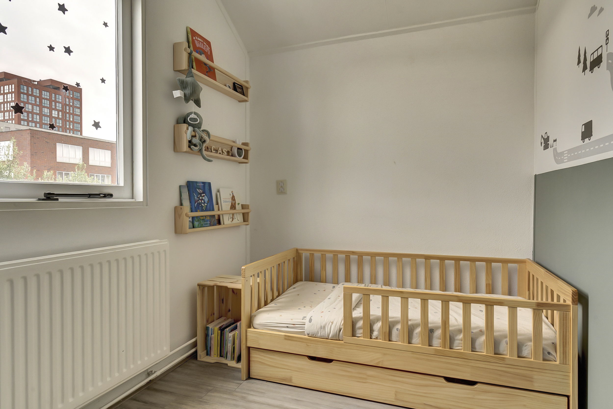 Drie slaapkamers, waarvan één in tweeën gedeeld (kinderkamer/werkruimte).