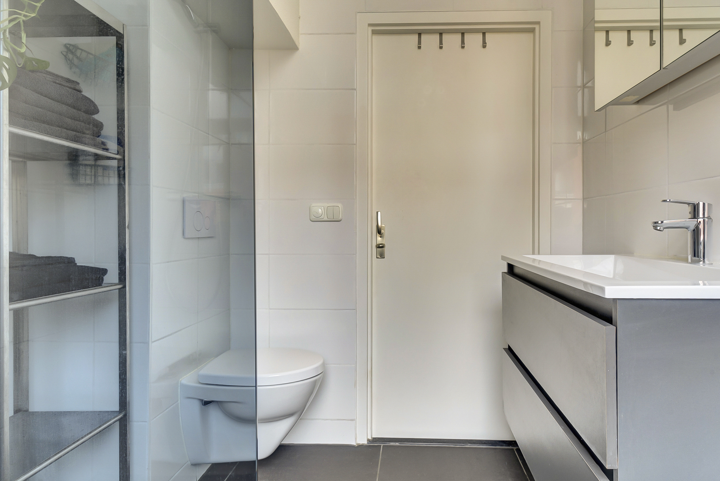 Badkamer vernieuwd in 2018 met douche, toilet en wastafelmeubel.