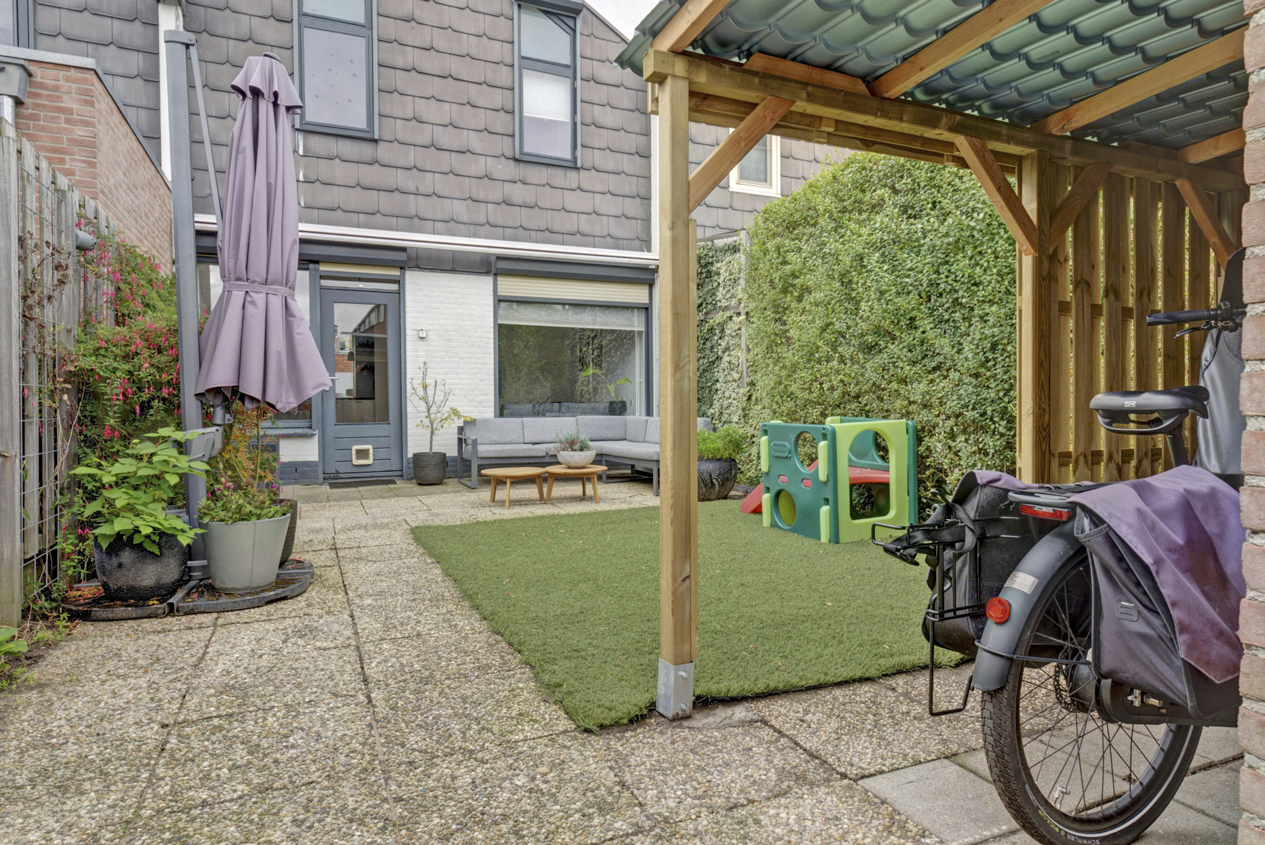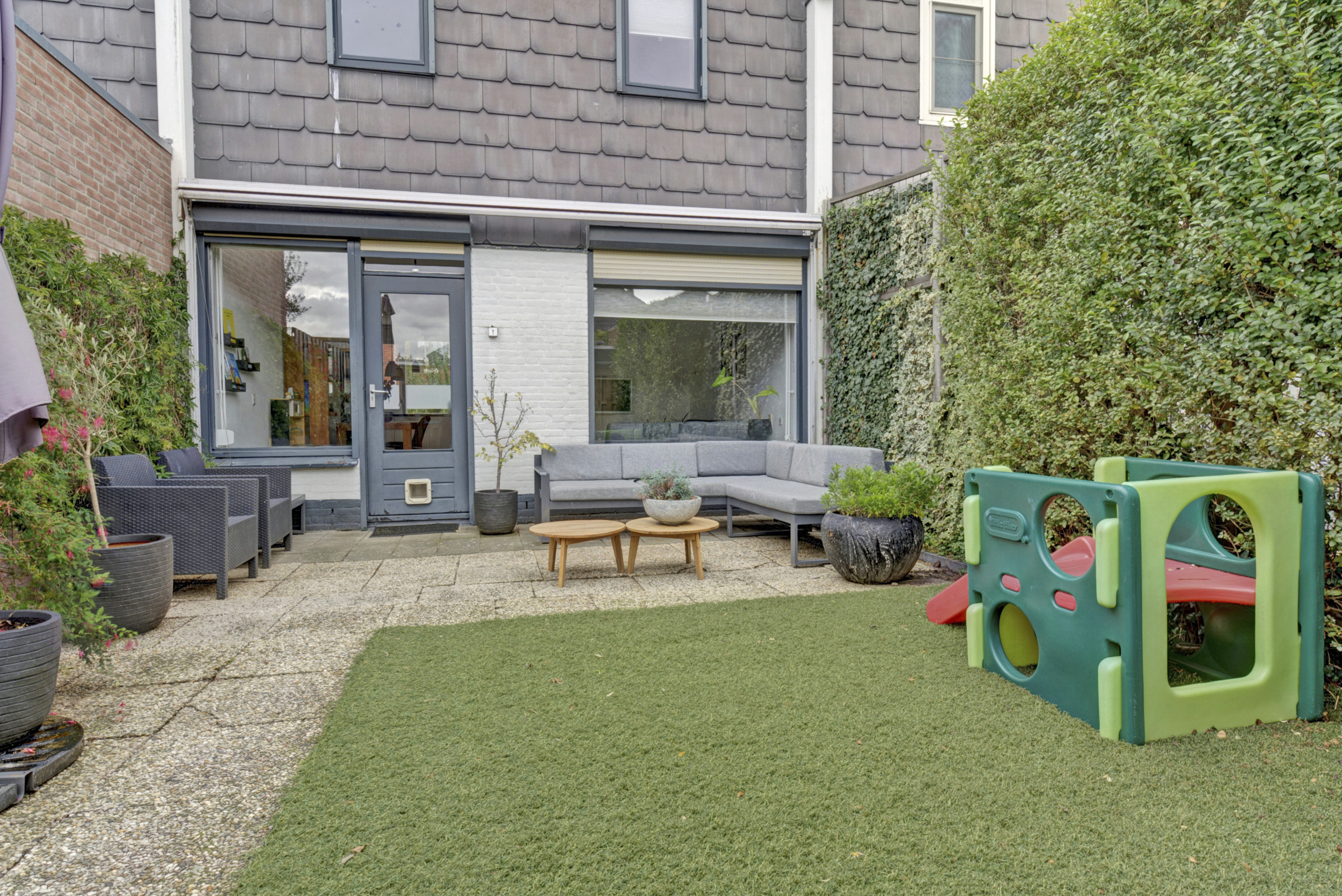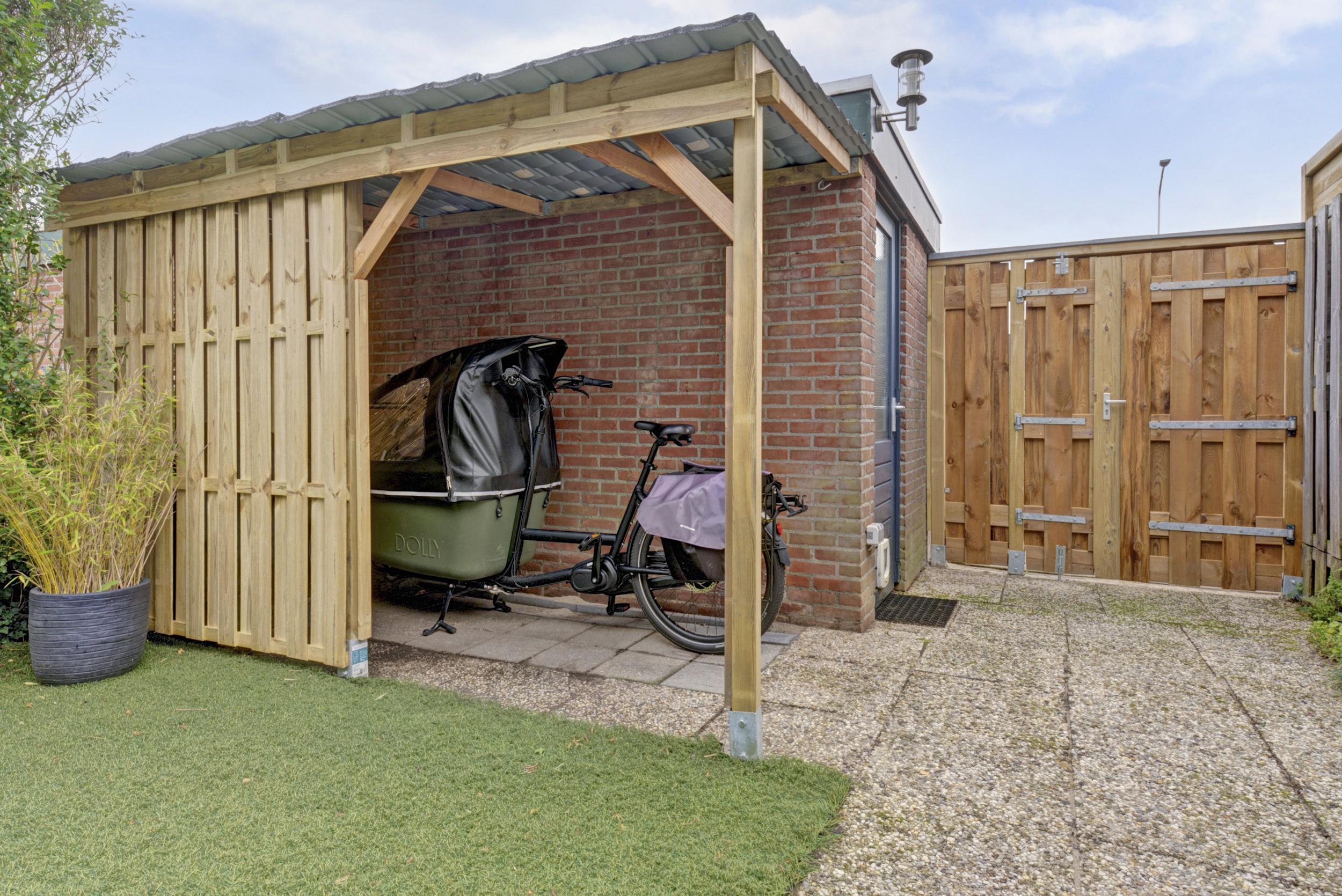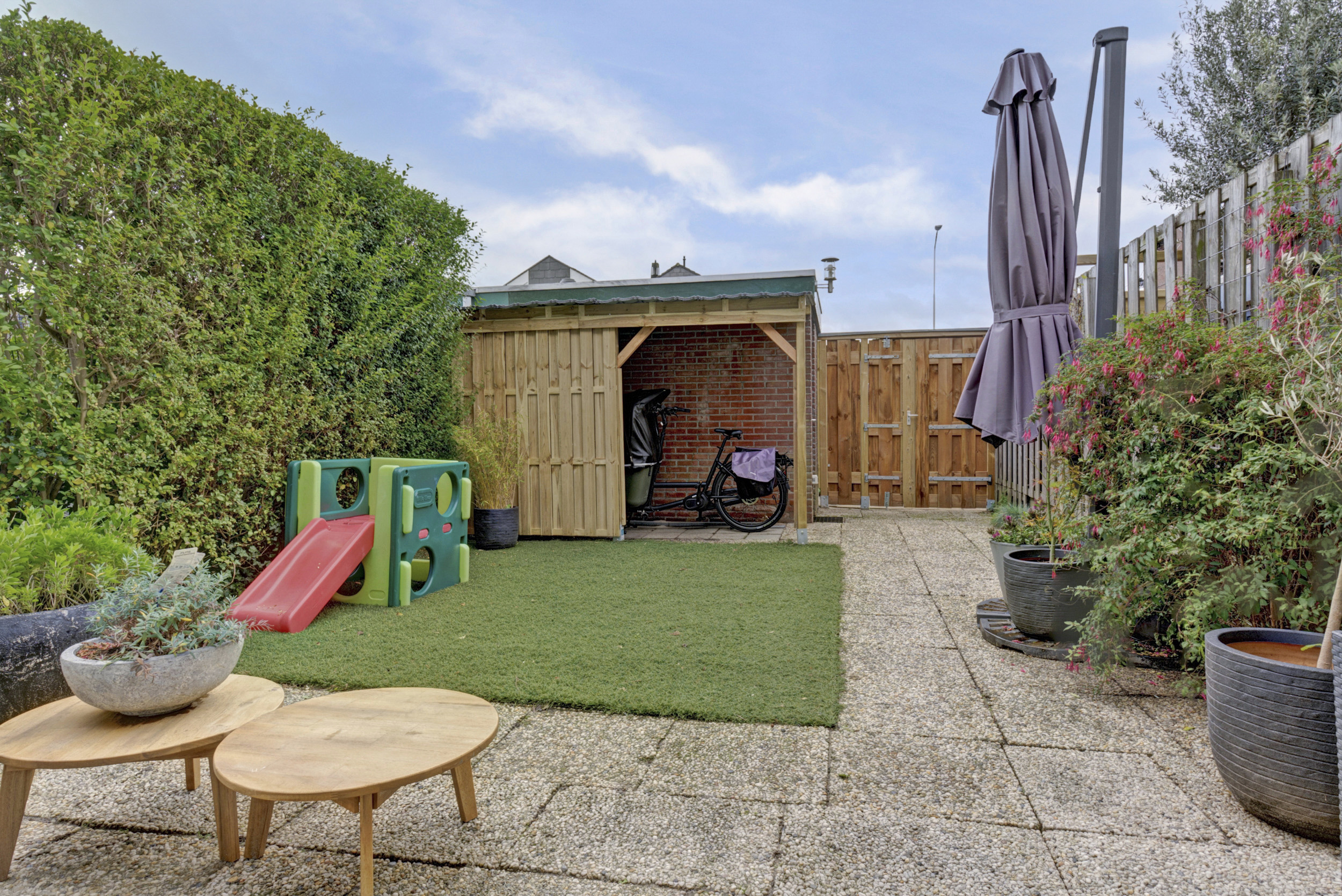 De achtertuin ligt op het zuidwesten, waardoor je de hele middag en avond kunt genieten van de zon. De tuin is overzichtelijk aangelegd en beschikt over een praktische berging en een achterom, ideaal voor fietsen of tuinspullen. De combinatie van ligging en buitenruimte maakt het wonen hier extra comfortabel.