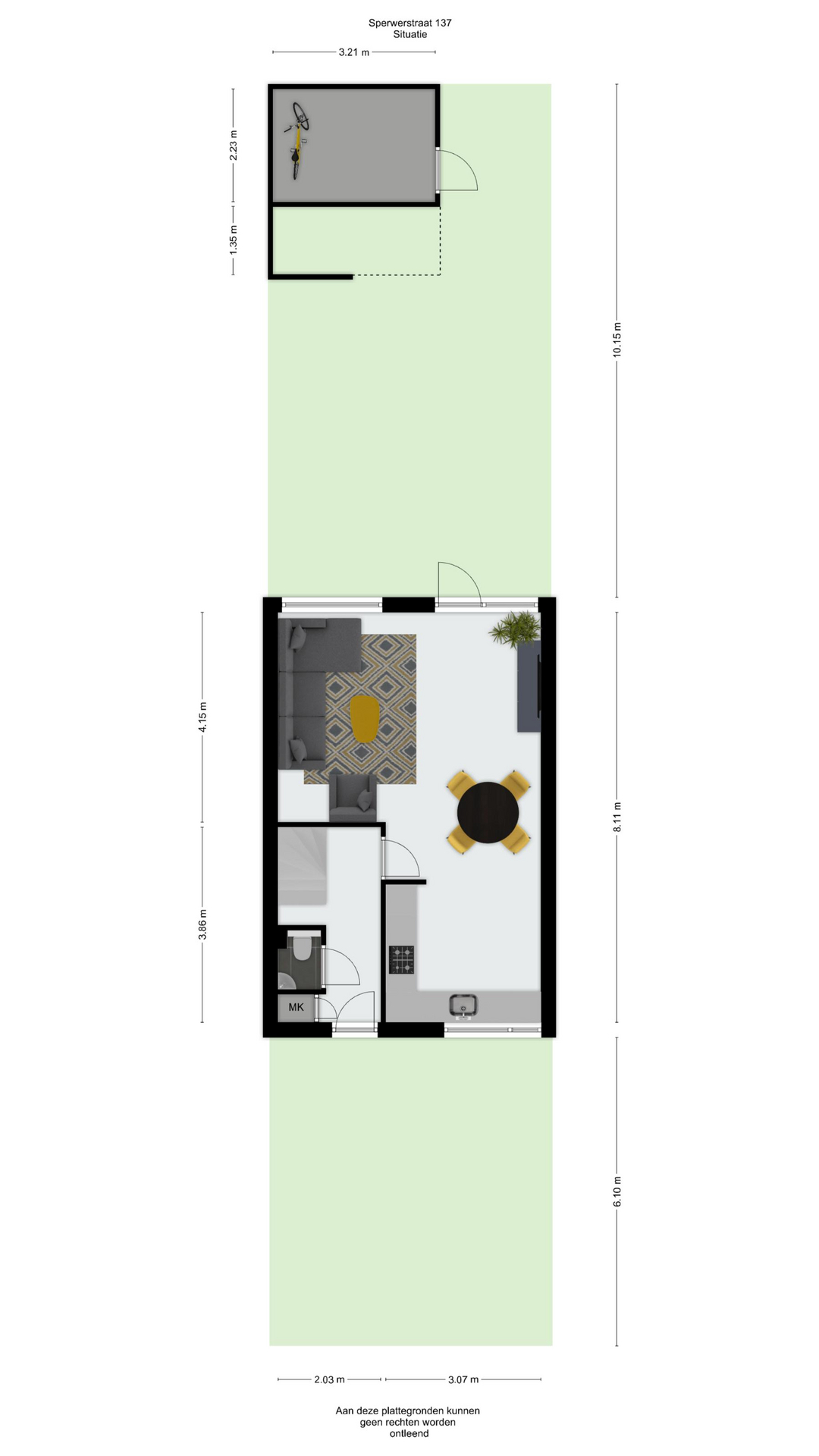 Zonnige tuin op het zuidwesten met berging en achterom.